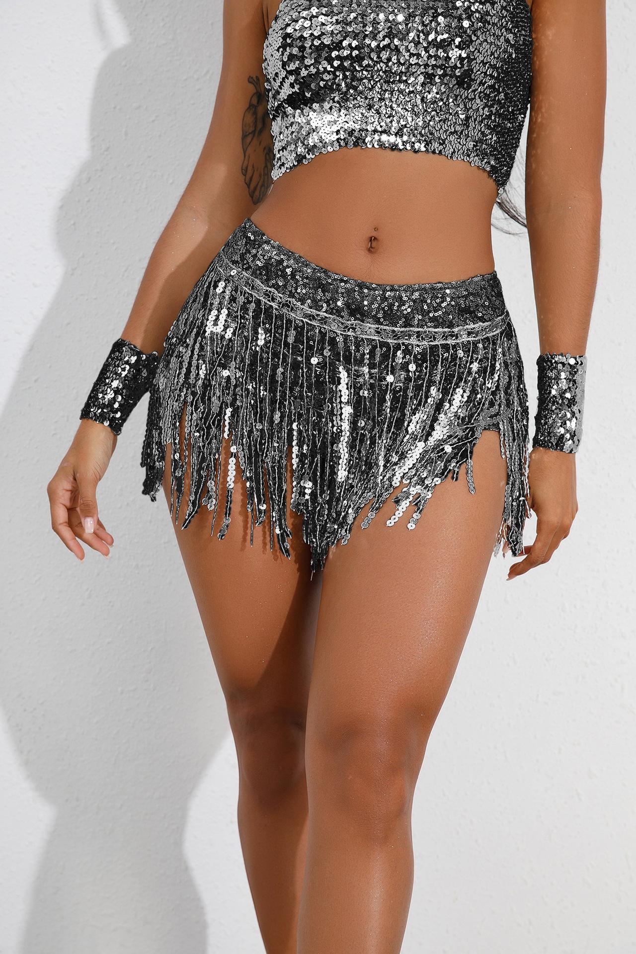 699# falda de lentejuelas falda con flecos falda de baile latino vestido de actuación ds de escenario pantalones cortos de lentejuelas con flecos vestido de actuación de bar