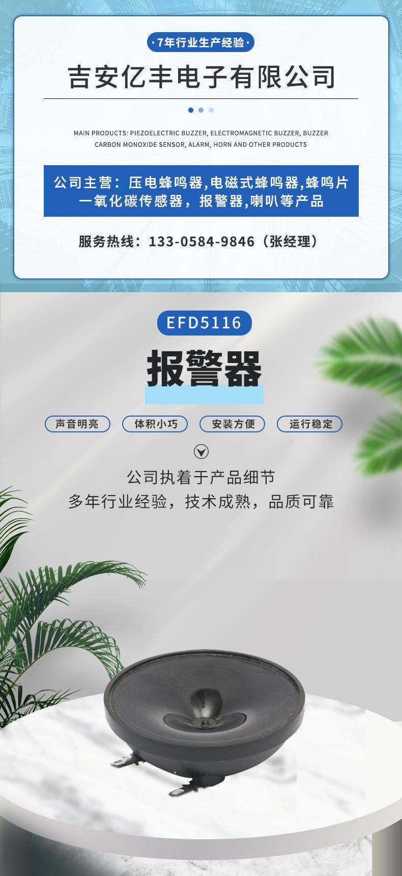 Ji'an Yifeng Electronics Co., Ltd. es un fabricante especializado en la producción y desarrollo de zumbadores piezoeléctricos, zumbadores electromagnéticos, láminas para zumbadores piezoeléctricos y sensores de monóxido de carbono. La empresa está ubicada en la Fase I del Parque Industrial Jishui, ciudad de Ji'an, provincia de Jiangxi. Cuenta con sucursales y almacenes en Ningbo. Desde su fundación, la empresa se ha adherido al principio de "calidad primero, precio primero y cliente primero", buscando la excelencia y ofreciendo a sus clientes productos y servicios eficientes y de alta calidad. Los productos son adecuados para: comunicaciones, electrodomésticos, automóviles, vehículos eléctricos, alarmas, instrumentos, sistemas inteligentes, etc. Su satisfacción es el motor de nuestro progreso. Le invitamos a llamarnos o enviarnos un correo electrónico para consultas y pedidos.