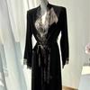 Camisón para Mujer Primavera y Otoño 2024 Nuevo Bata de Seda de Hielo Delgada Sexy Pijama de Verano de Una Pieza Kimono Color Loto