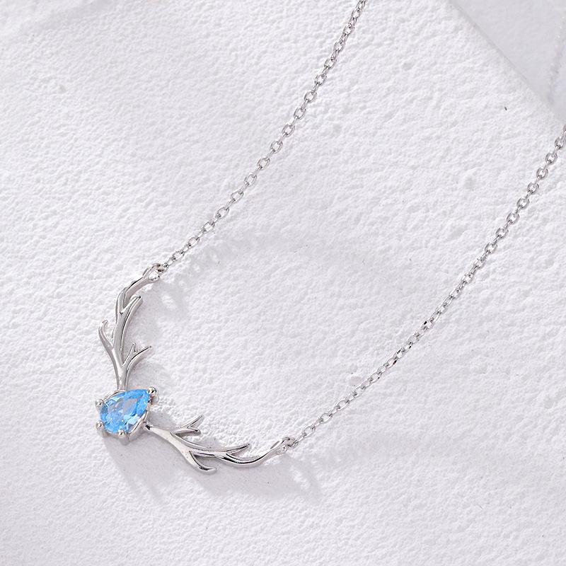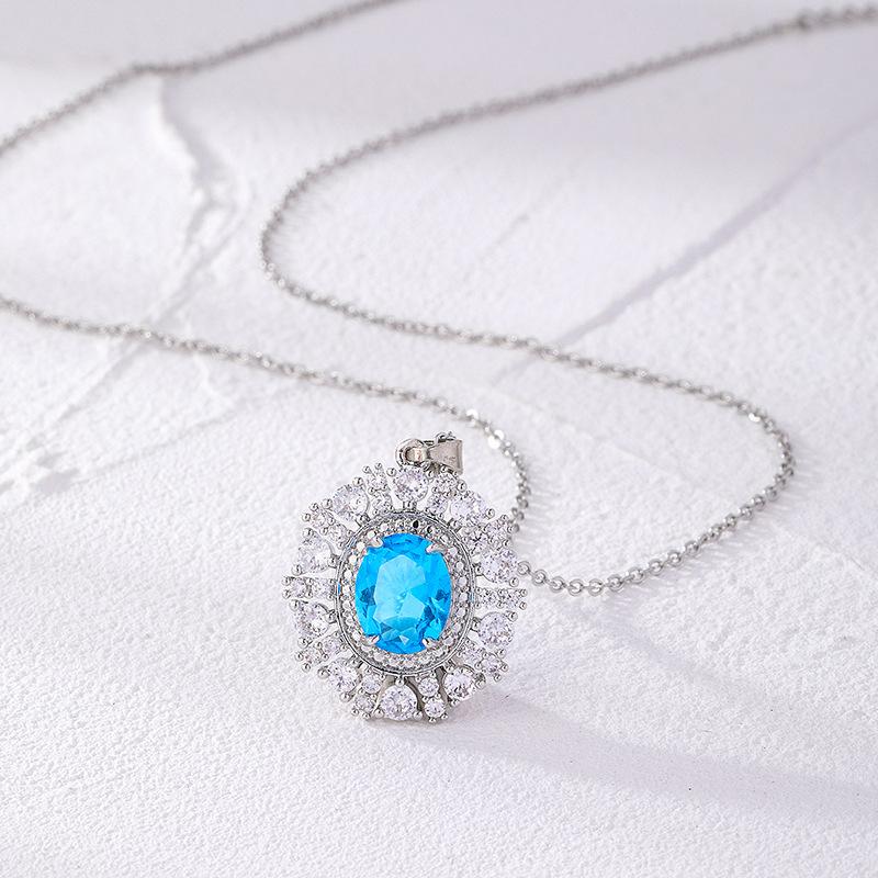 Collar Diamante Azul Corto Cadena Clavícula Mujer Cobre Chapado Todo el Camino Tú Collar Venta al por Mayor