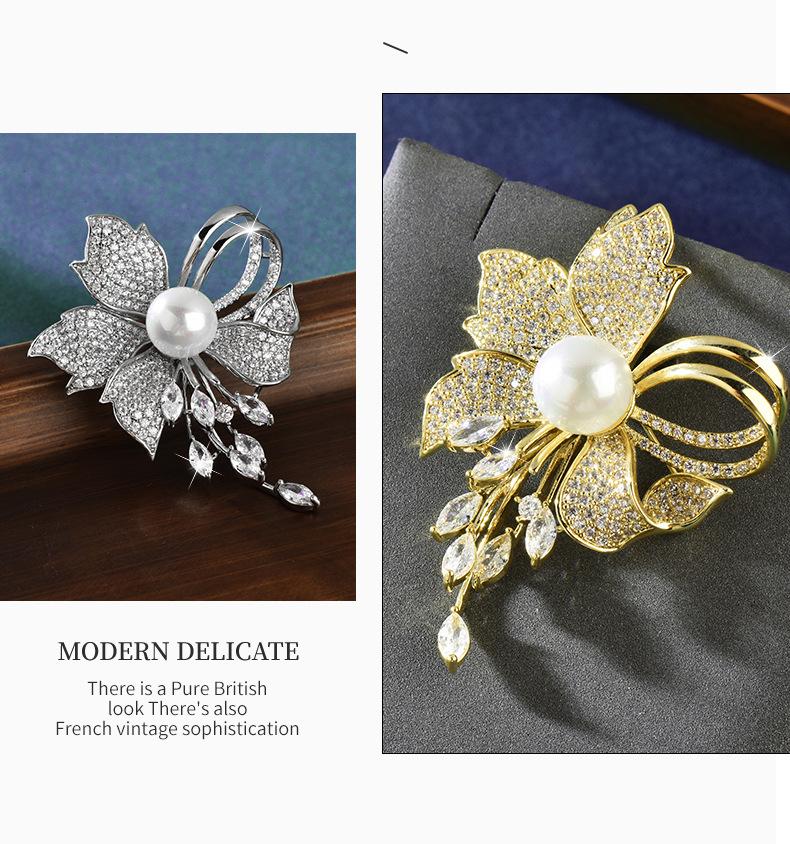 Broche de perlas de alta gama para mujer, exquisito broche de alta gama con ramillete para traje, camisa de lujo, accesorios de alfiler con temperamento, venta al por mayor