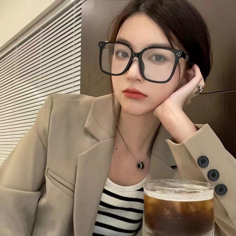 Gafas de miopía con montura negra, gafas de moda de estilo coreano para mujer con grados, artefacto de belleza simple, gafas de adelgazamiento de cara redonda grande con montura grande