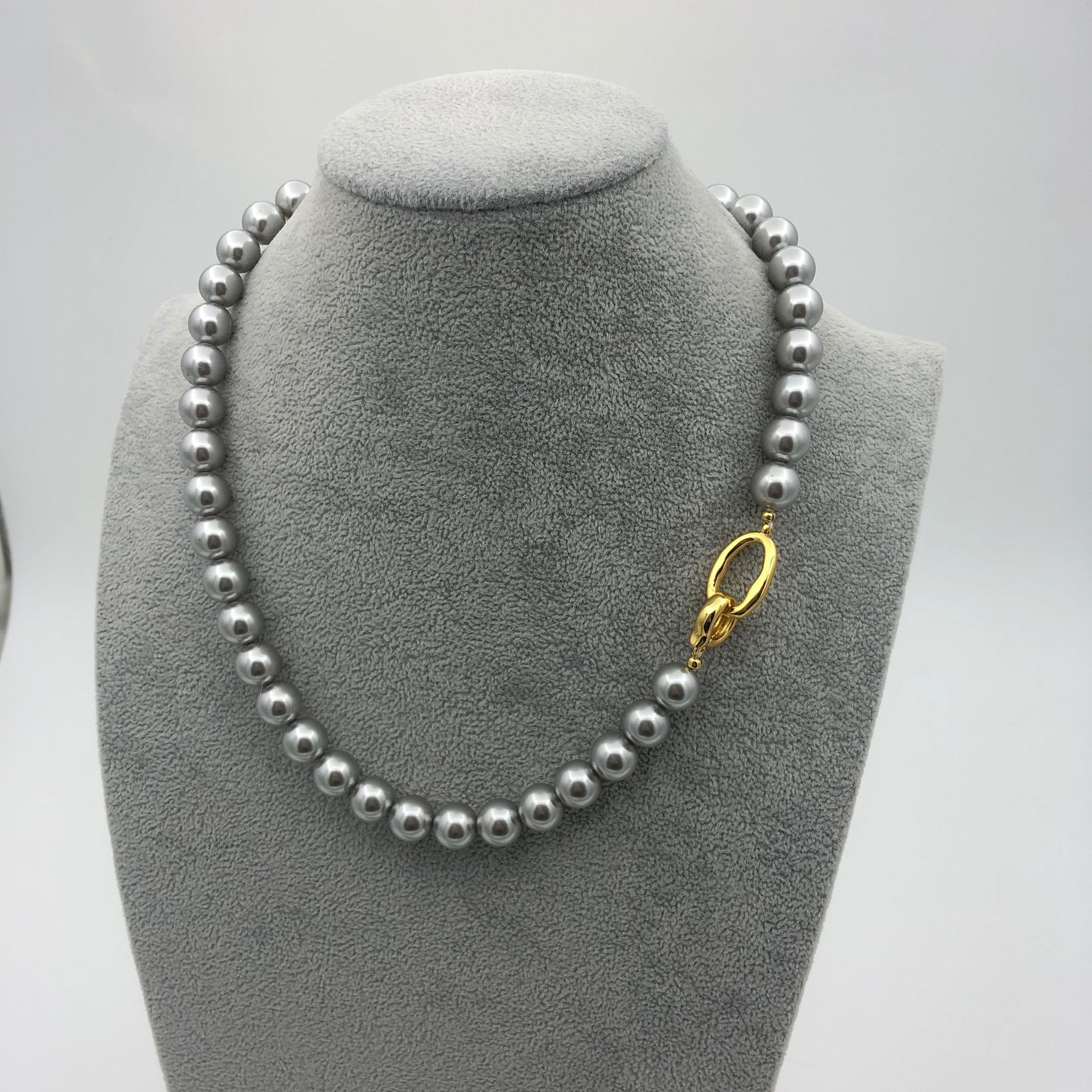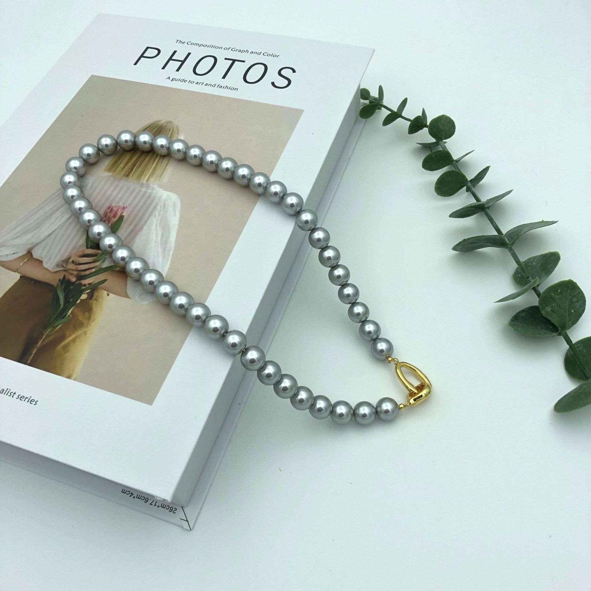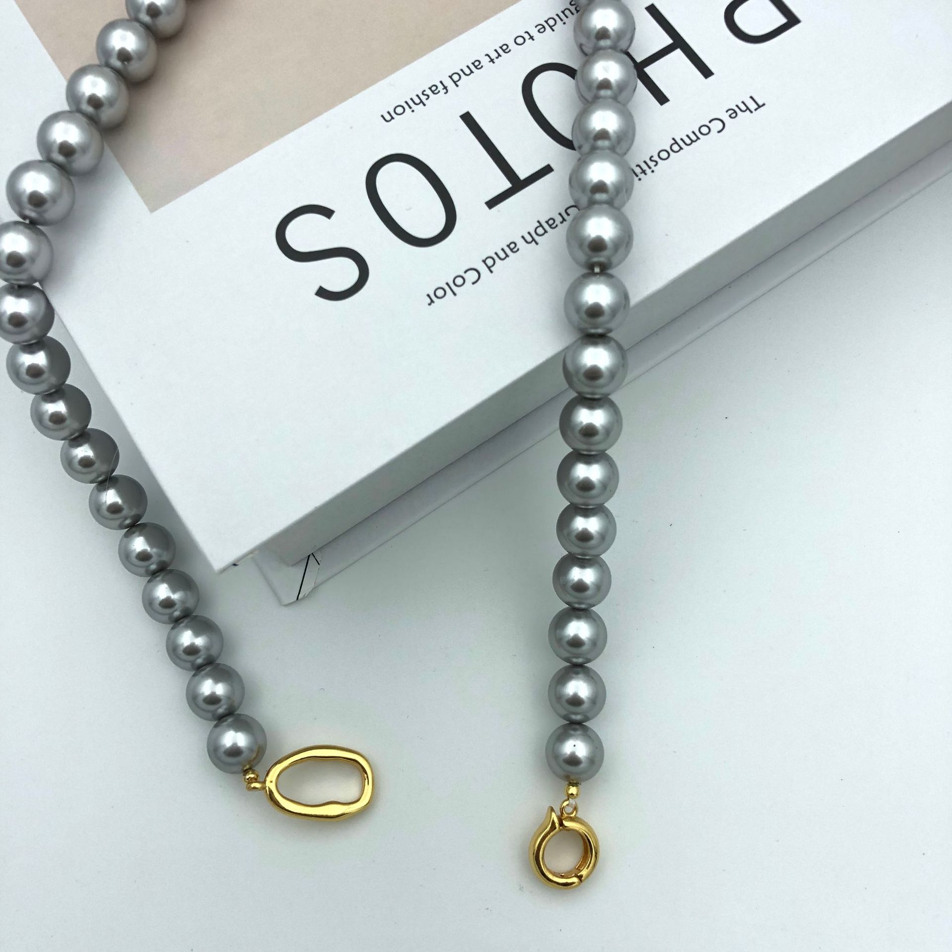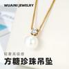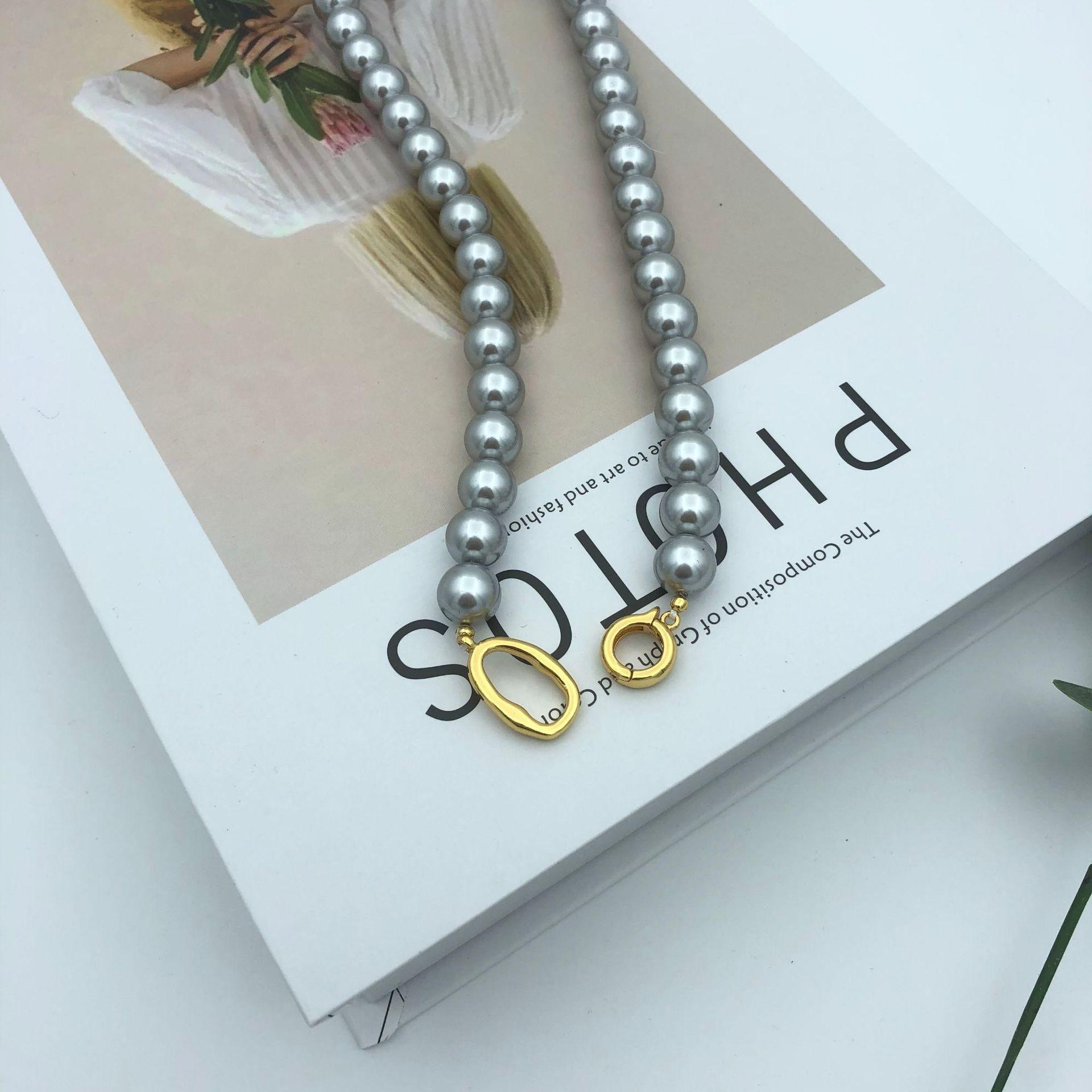 Collar con doble anilla y hebilla de oro auténtico de 18 quilates bañado en cobre, con perlas auténticas Many Ma Shi Jia, estilo elegante y elegante, cadena de clavícula de alta gama para mujer.