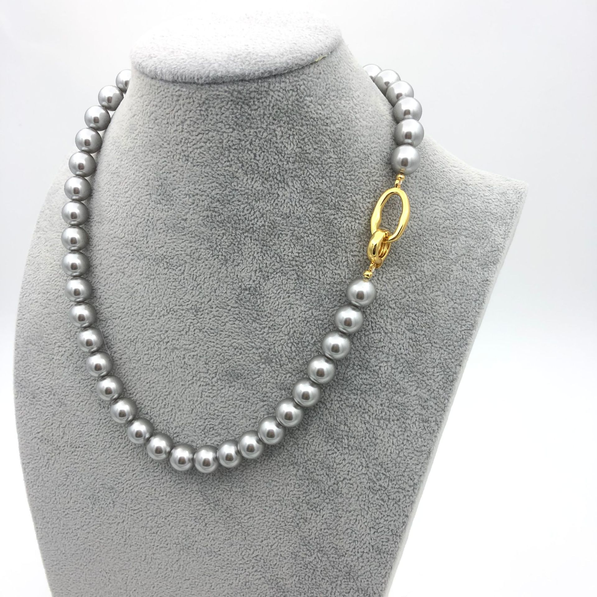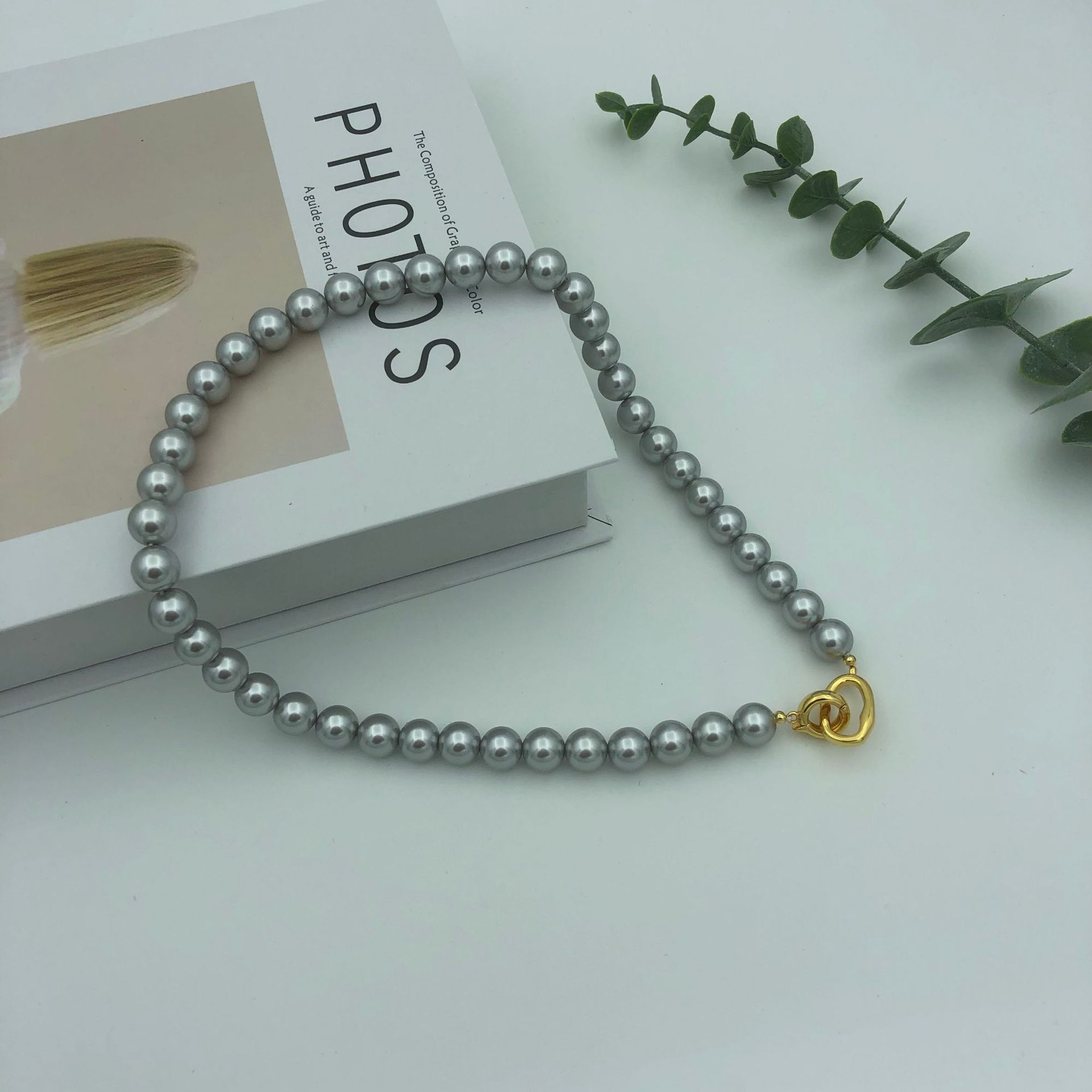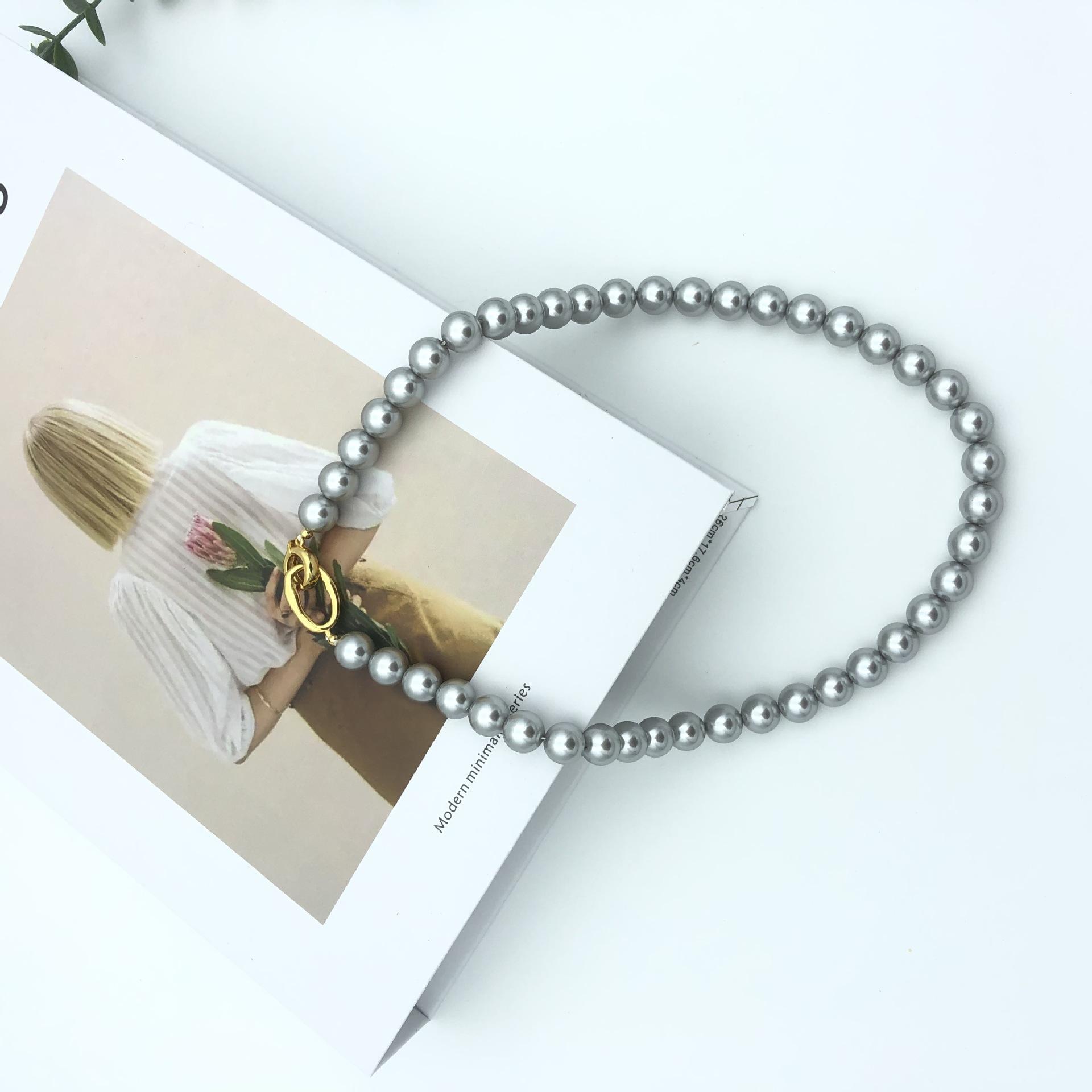 Collar con doble anilla y hebilla de oro auténtico de 18 quilates bañado en cobre, con perlas auténticas Many Ma Shi Jia, estilo elegante y elegante, cadena de clavícula de alta gama para mujer.