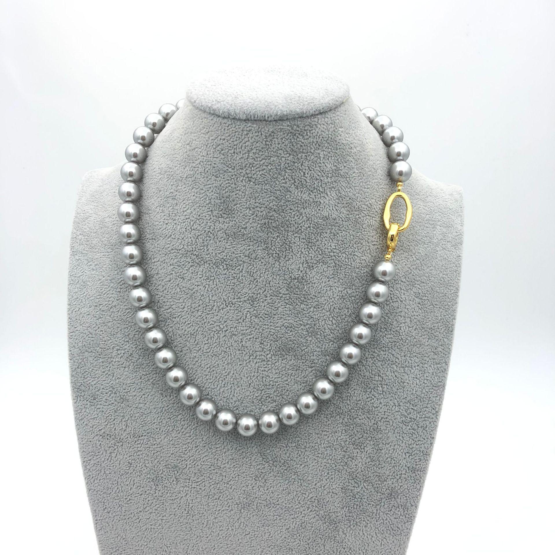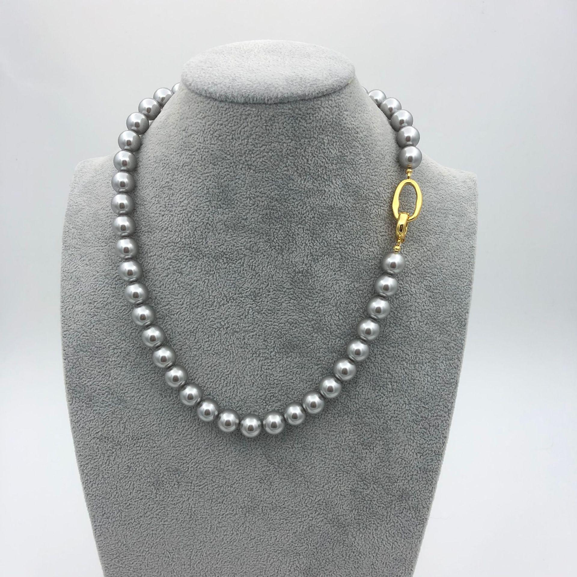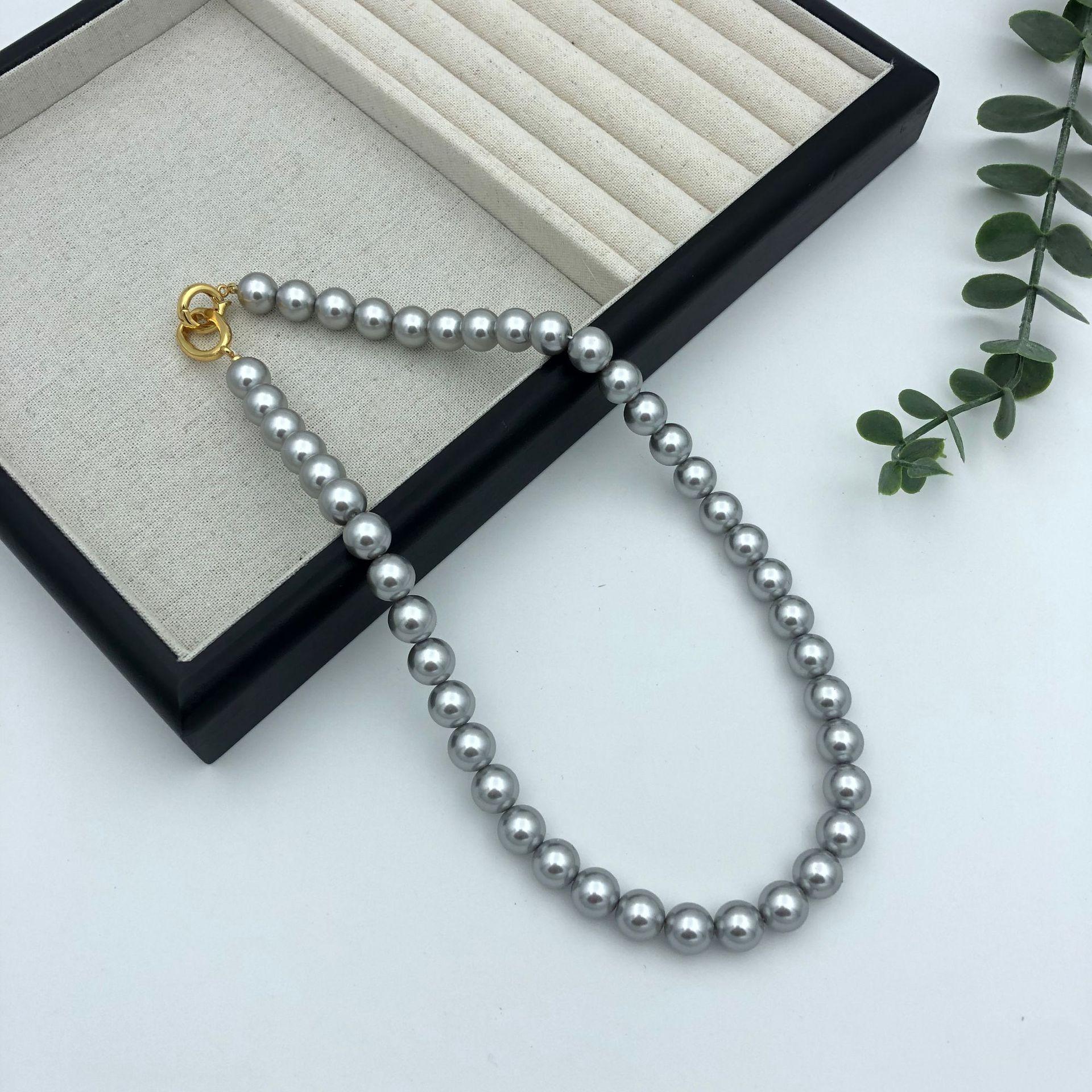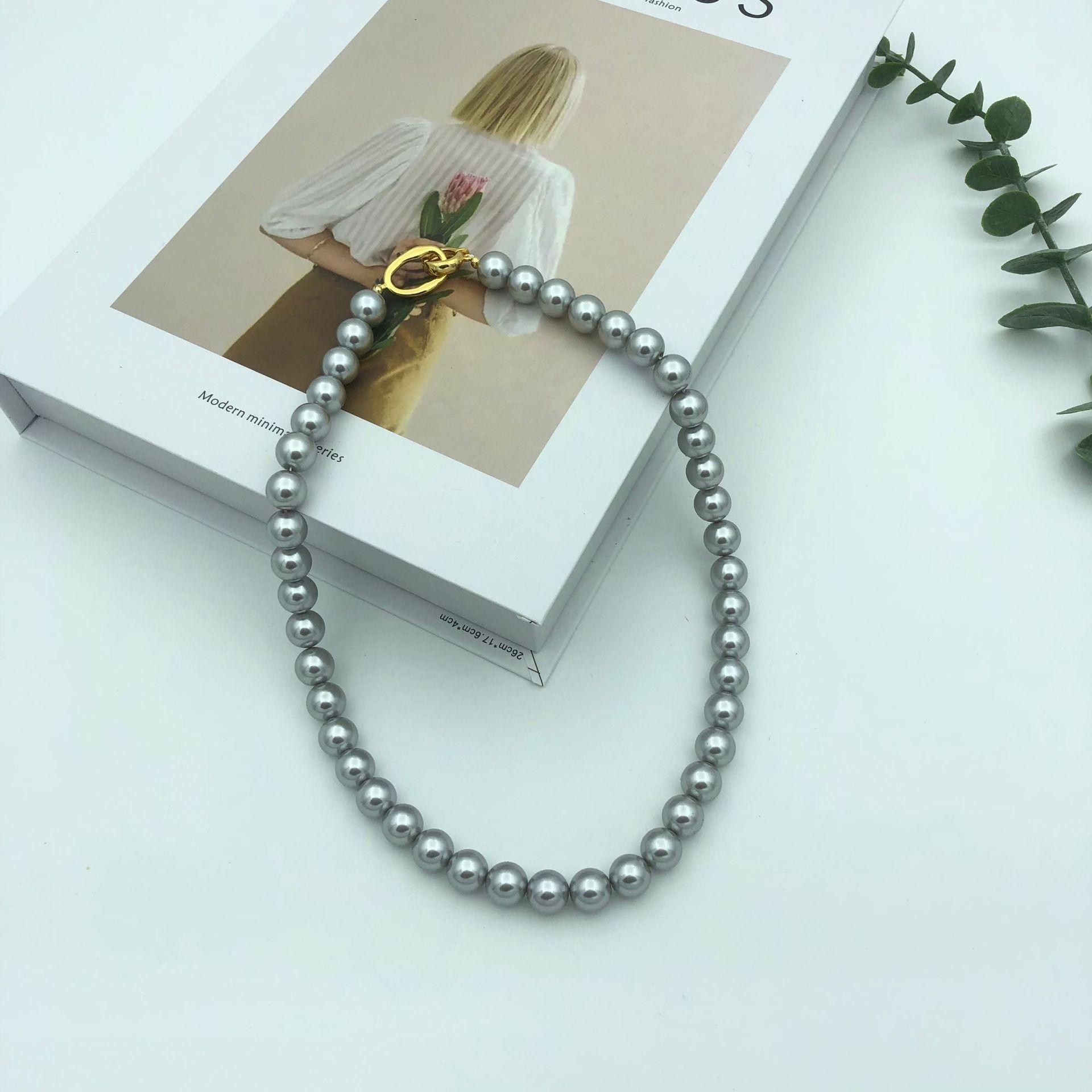 Collar con doble anilla y hebilla de oro auténtico de 18 quilates bañado en cobre, con perlas auténticas Many Ma Shi Jia, estilo elegante y elegante, cadena de clavícula de alta gama para mujer.