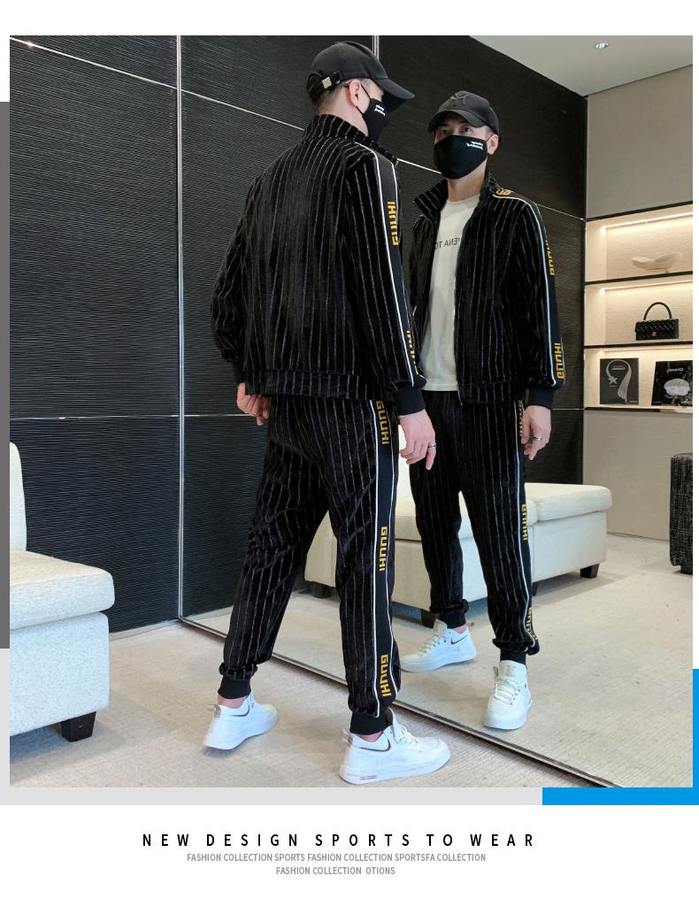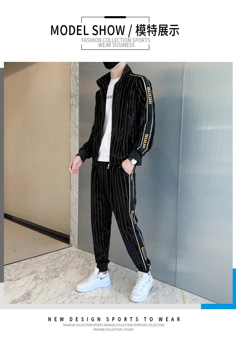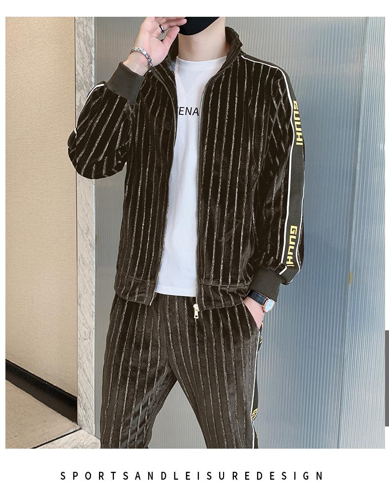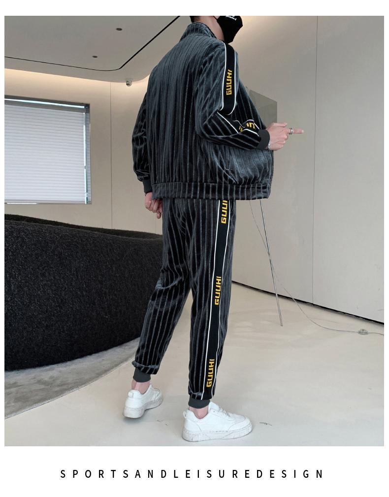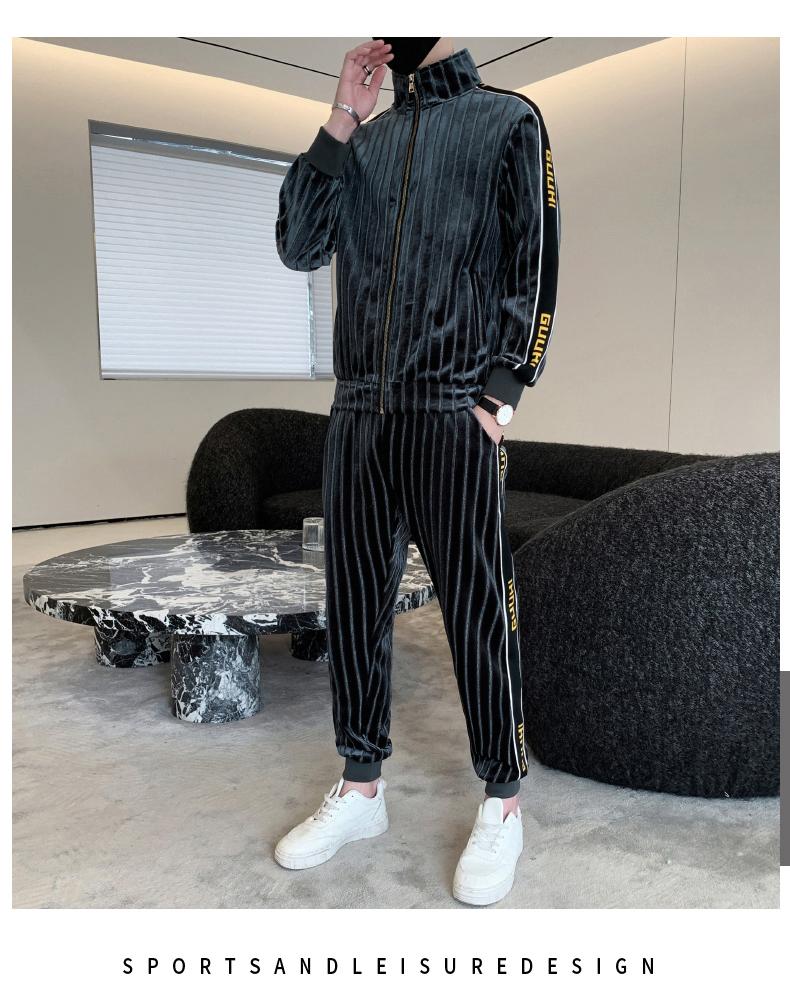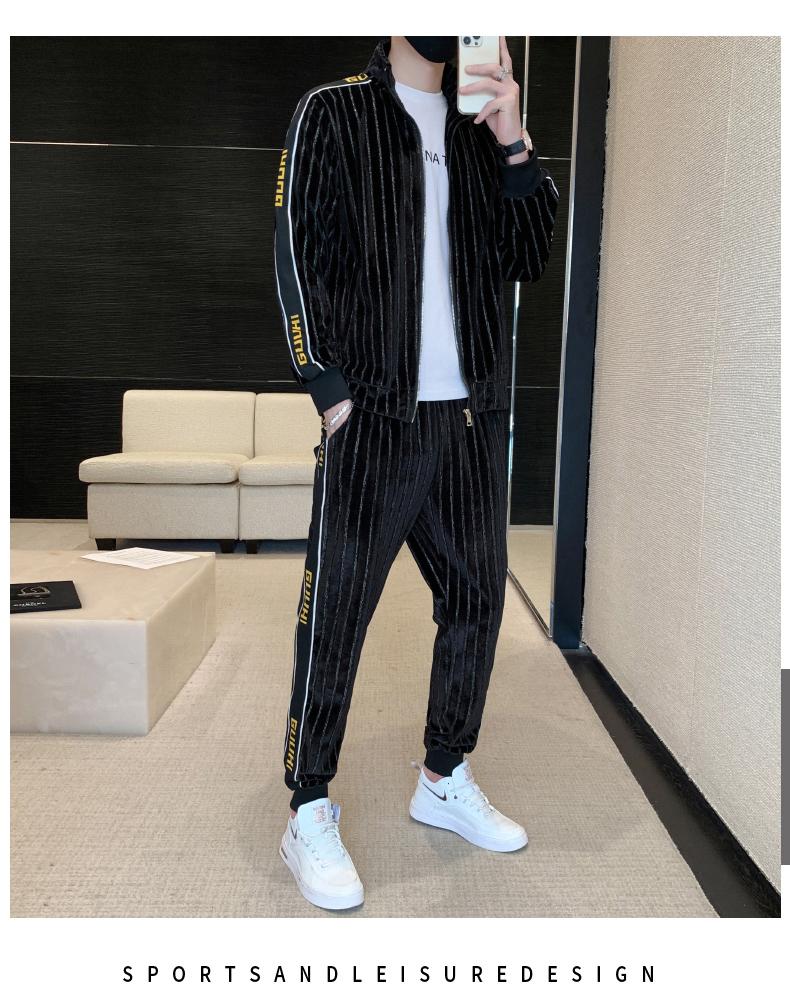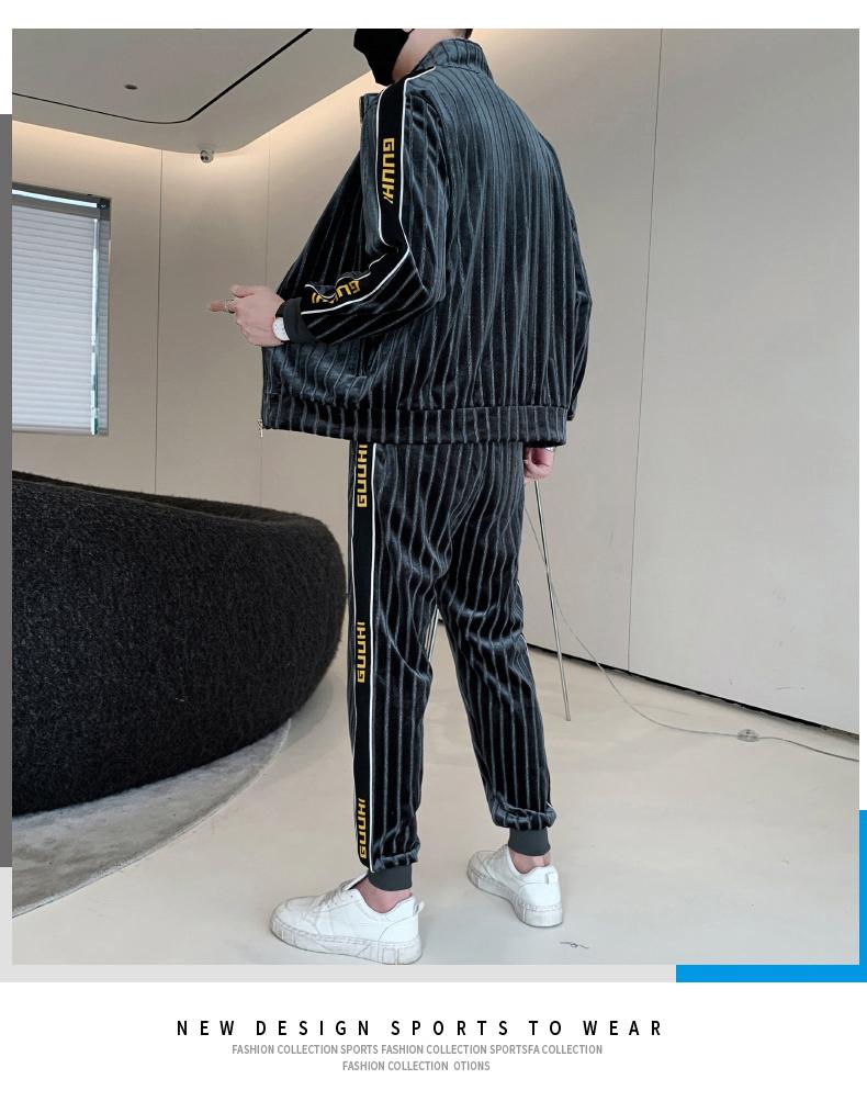 Nuevo traje deportivo de dos piezas de estilo nacional retro de terciopelo dorado, tendencia juvenil fina para primavera y otoño.