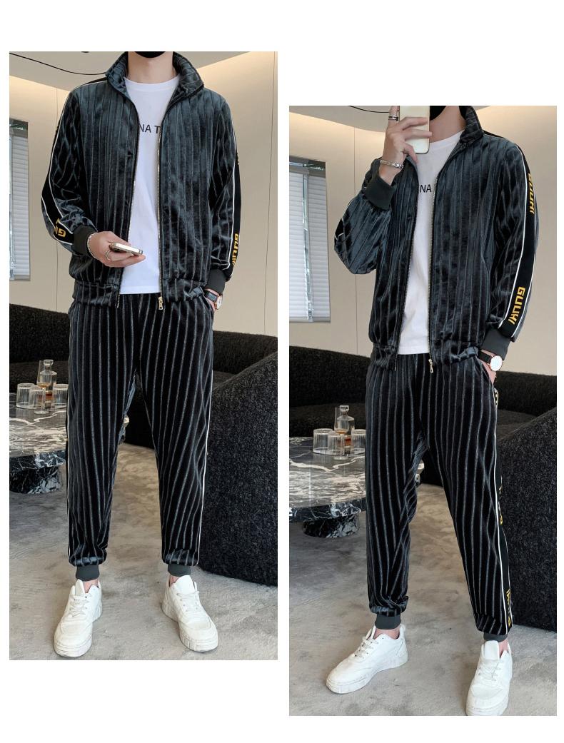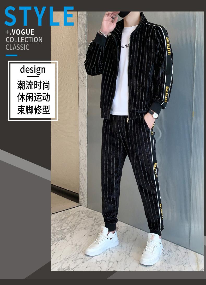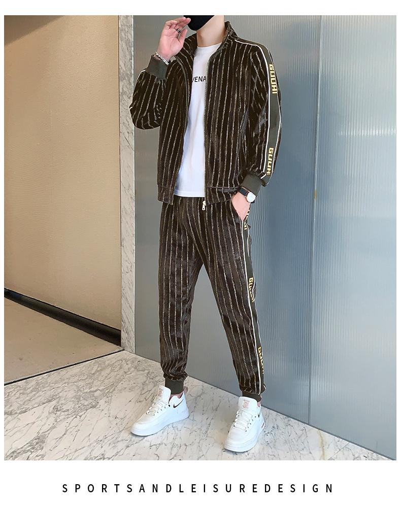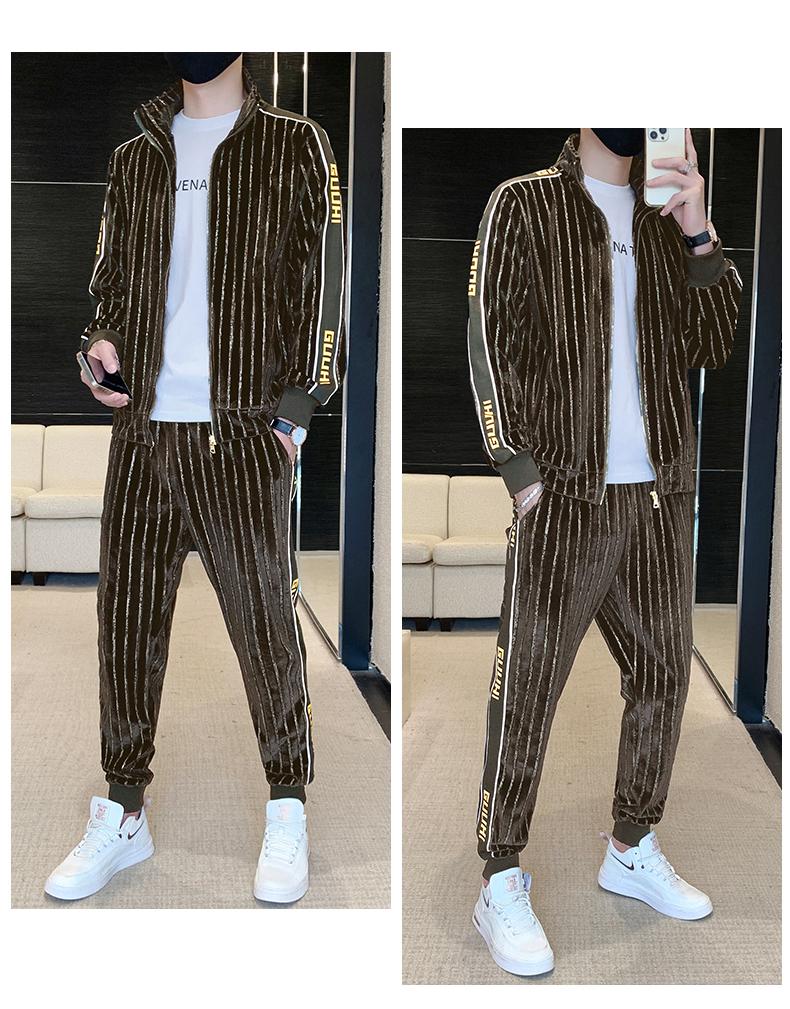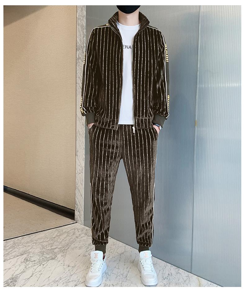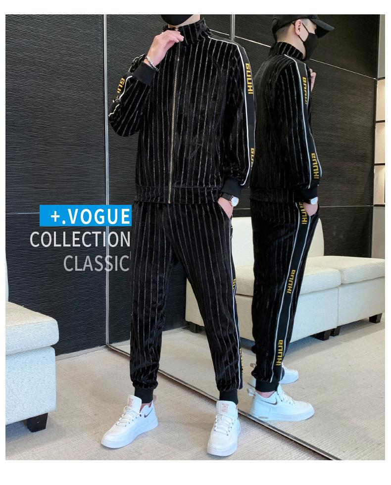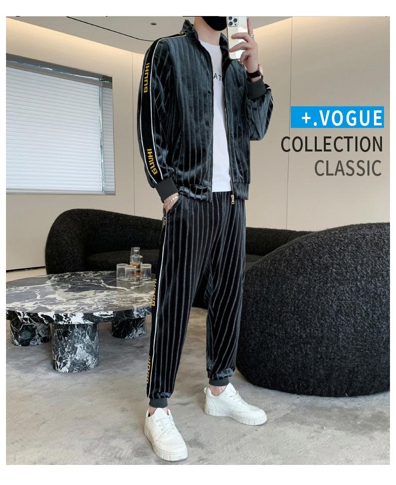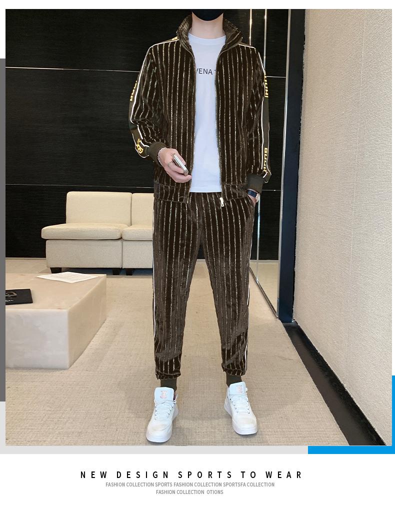 Nuevo traje deportivo de dos piezas de estilo nacional retro de terciopelo dorado, tendencia juvenil fina para primavera y otoño.