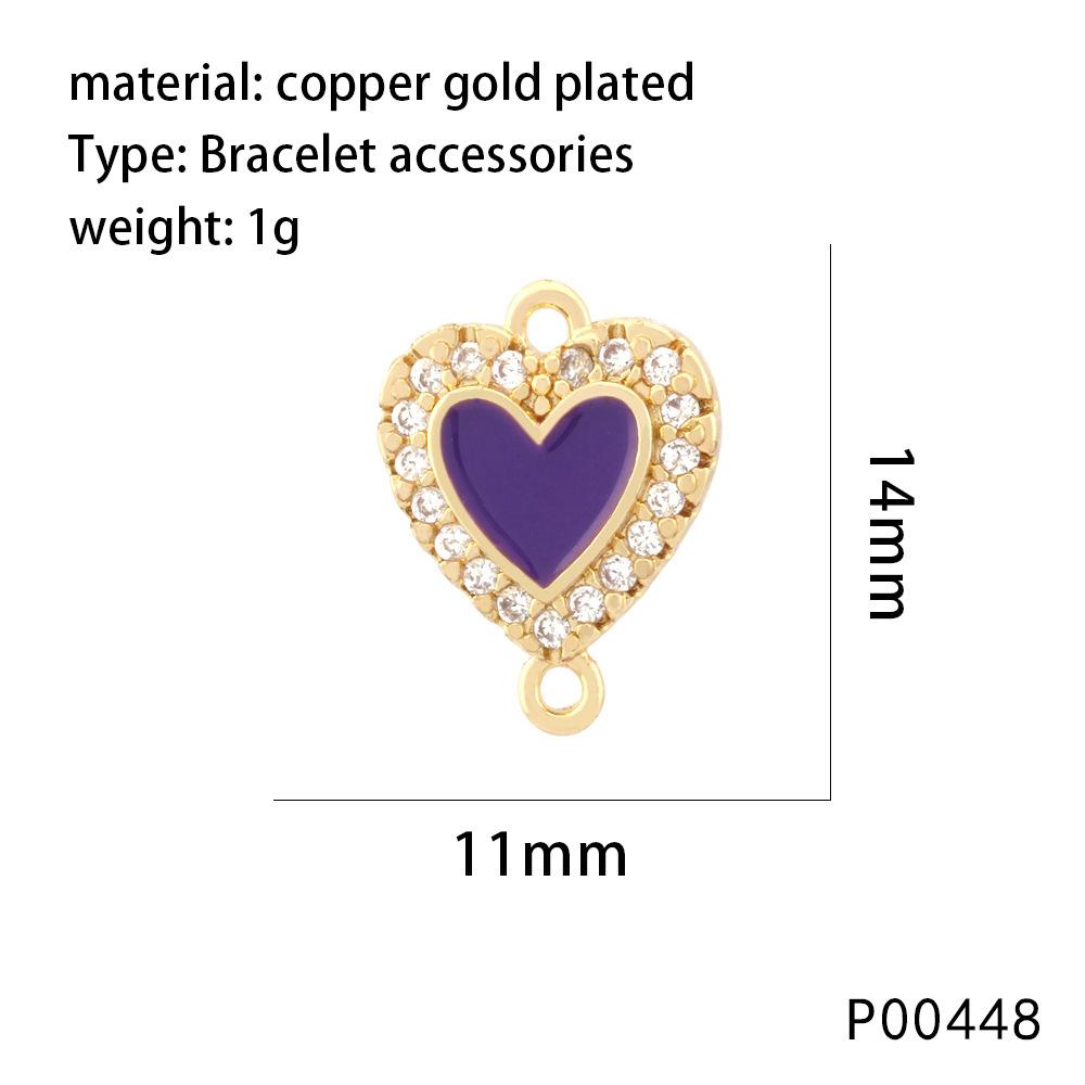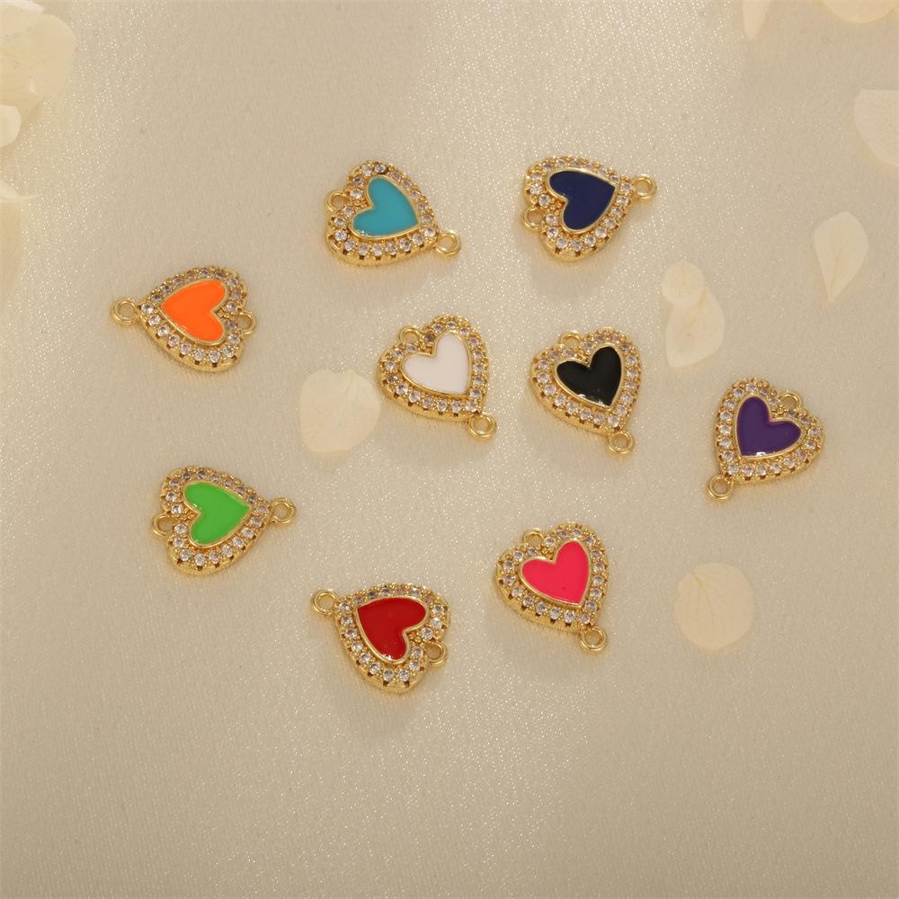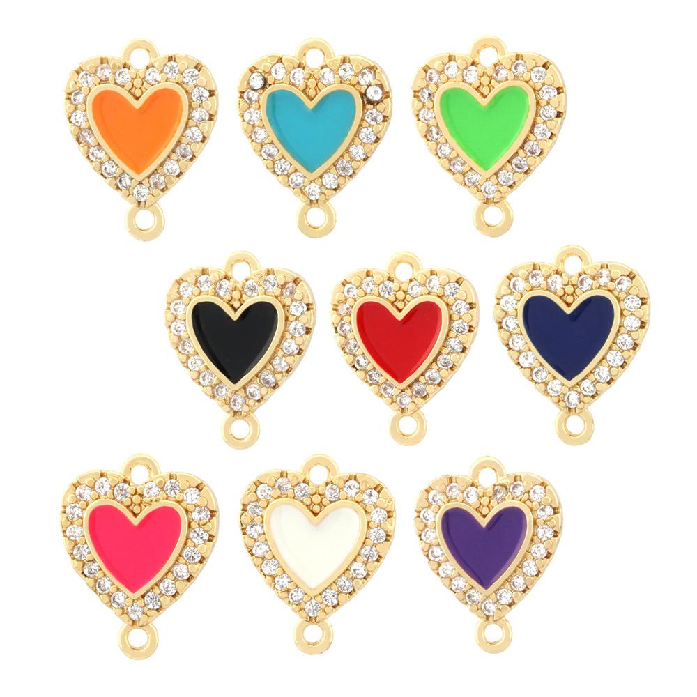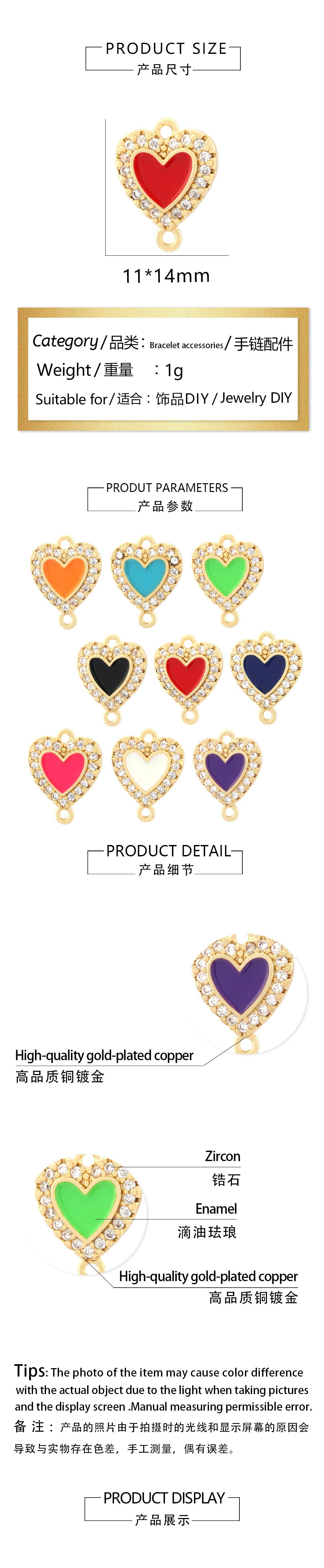 Comercio exterior transfronterizo cobre chapado en oro de 18 quilates micro-incrustado circón color gota de aceite colgante de amor en forma de corazón accesorios de joyería para pulsera DIY