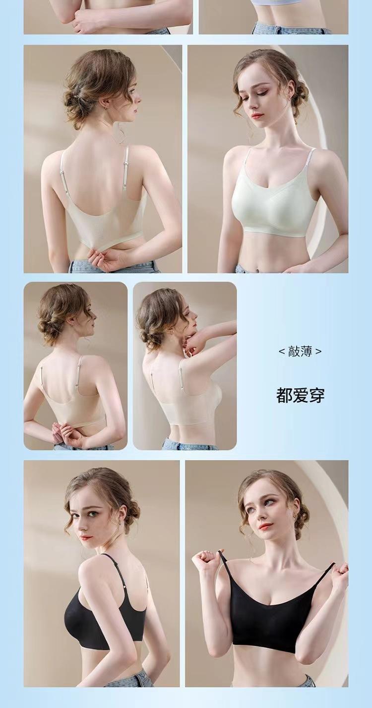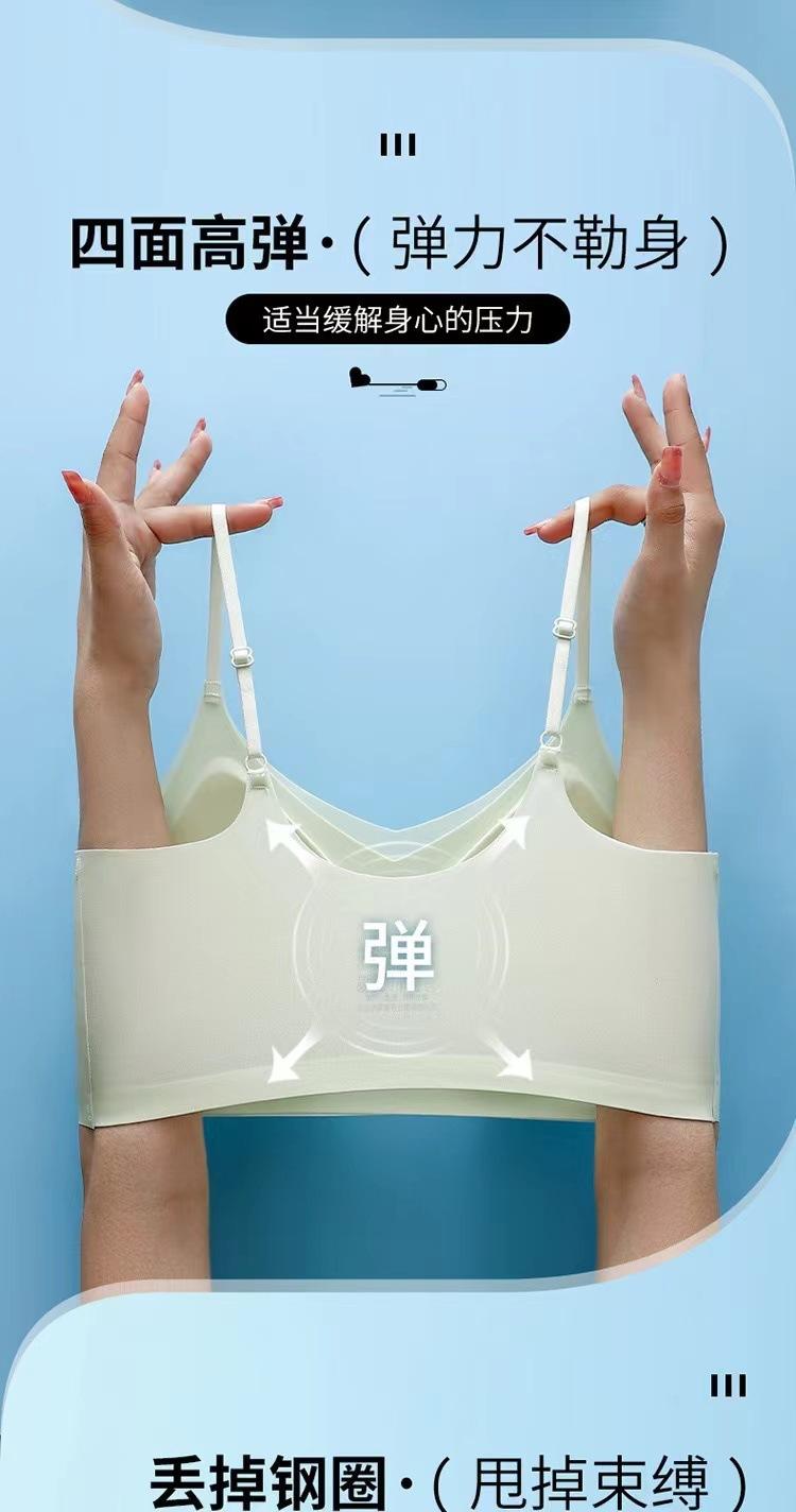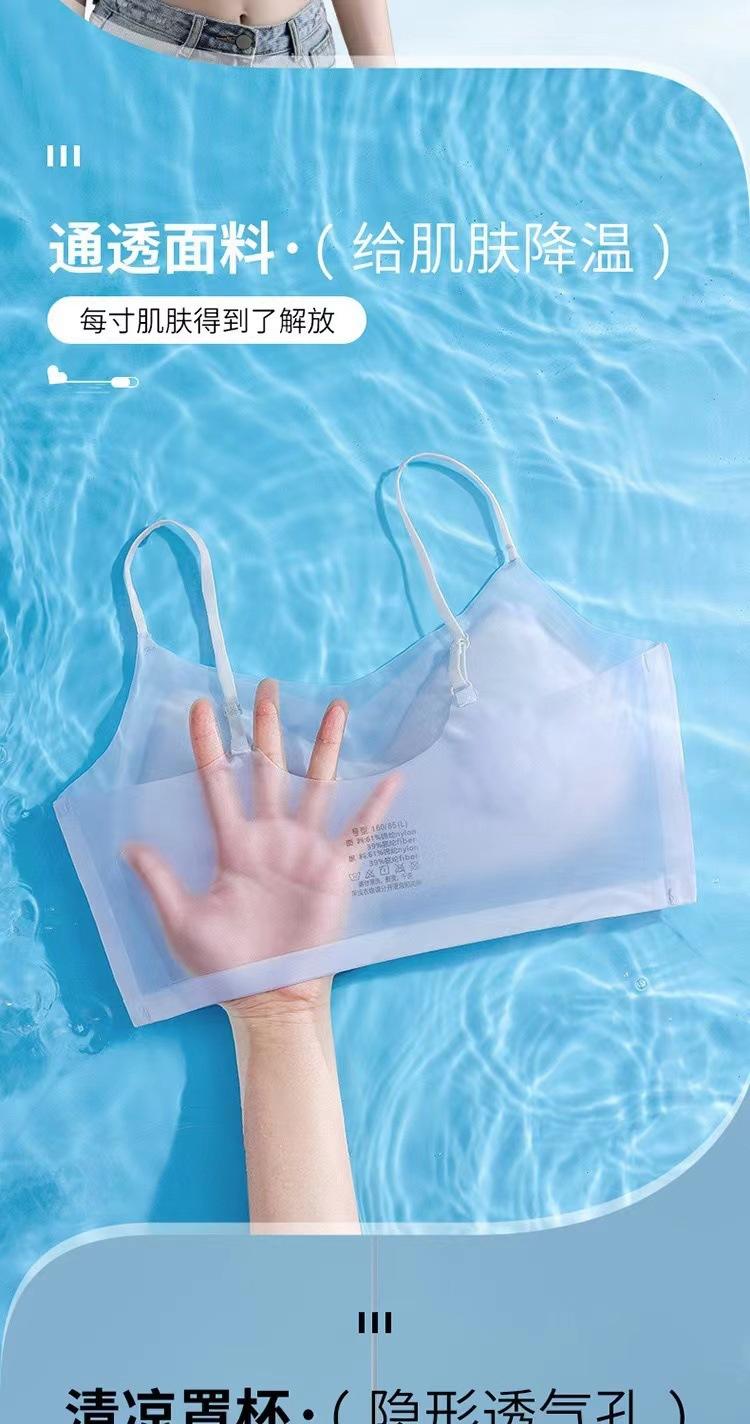 Ropa interior fina de verano sin costuras para mujer, de una pieza, con copa fija, almohadilla para el pecho, soporte superior, fruncido, transpirable y cómodo.