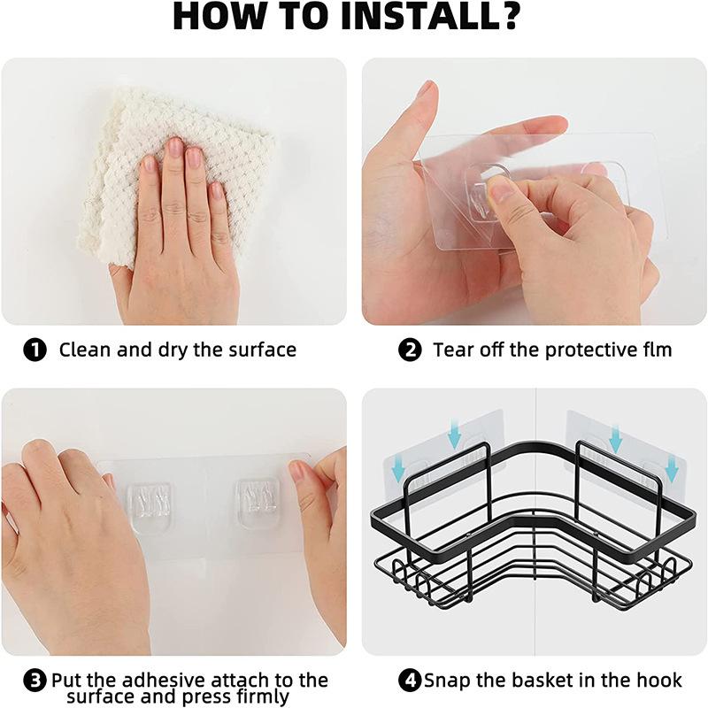 Estante de almacenamiento de baño de hierro transfronterizo, sin perforaciones, para ducha de esquina, gel de ducha, jabón, estante de ducha triangular