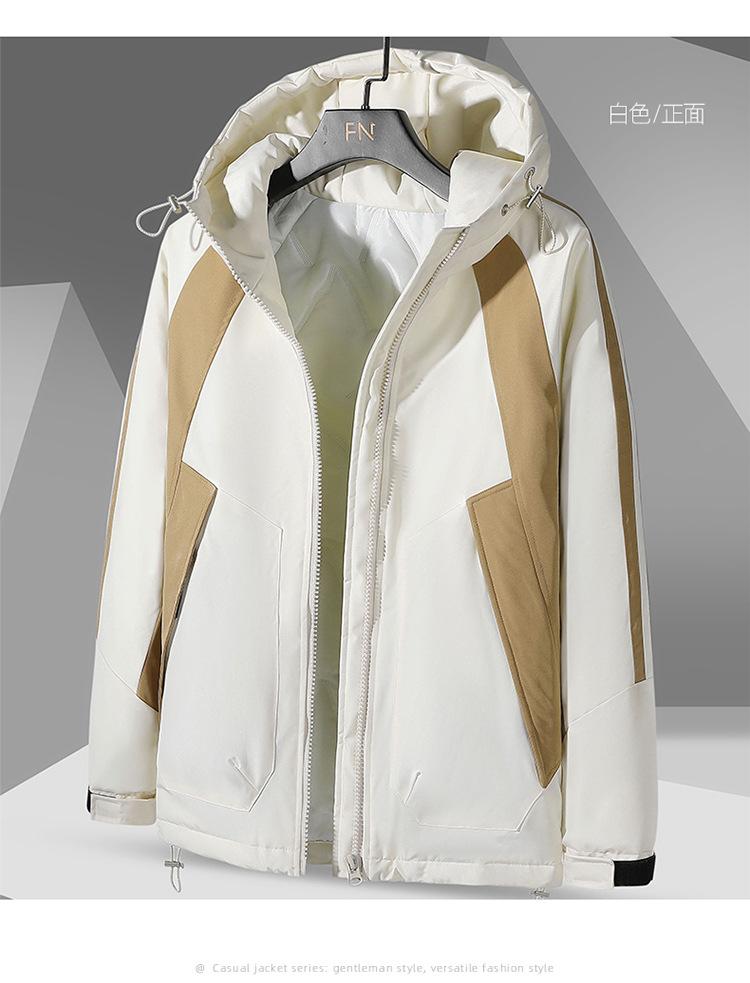 Chaqueta acolchada de algodón con capucha y colores a juego de invierno 2023, chaqueta con costuras, chaqueta acolchada de algodón versátil, chaqueta holgada de moda informal para hombre, cálida para exteriores