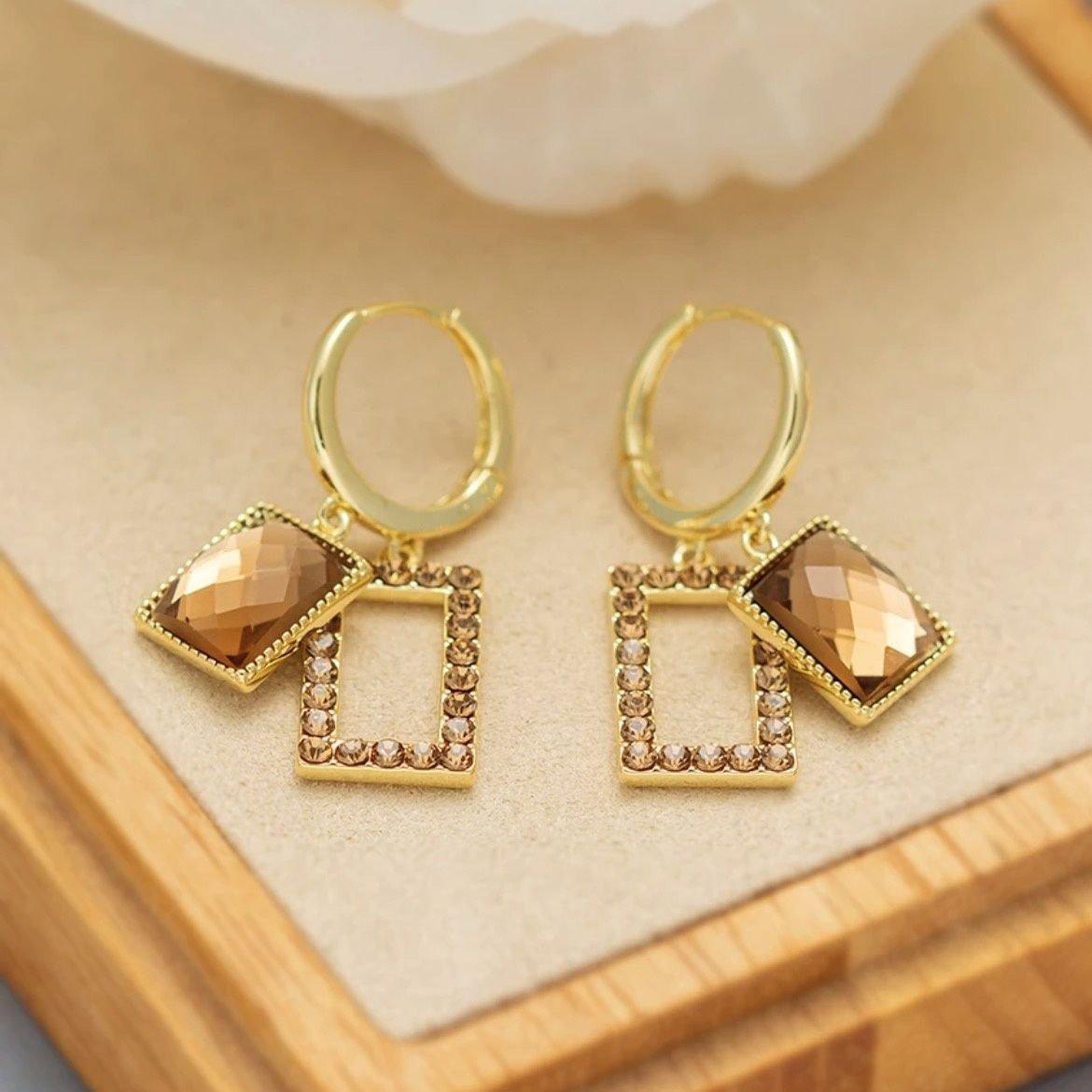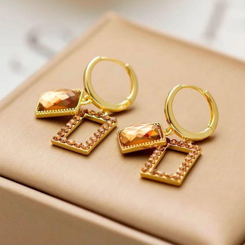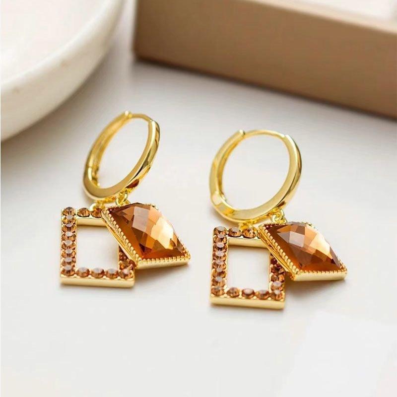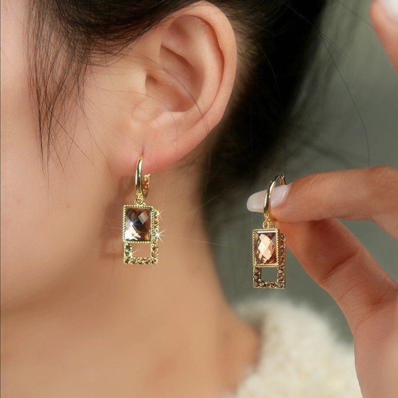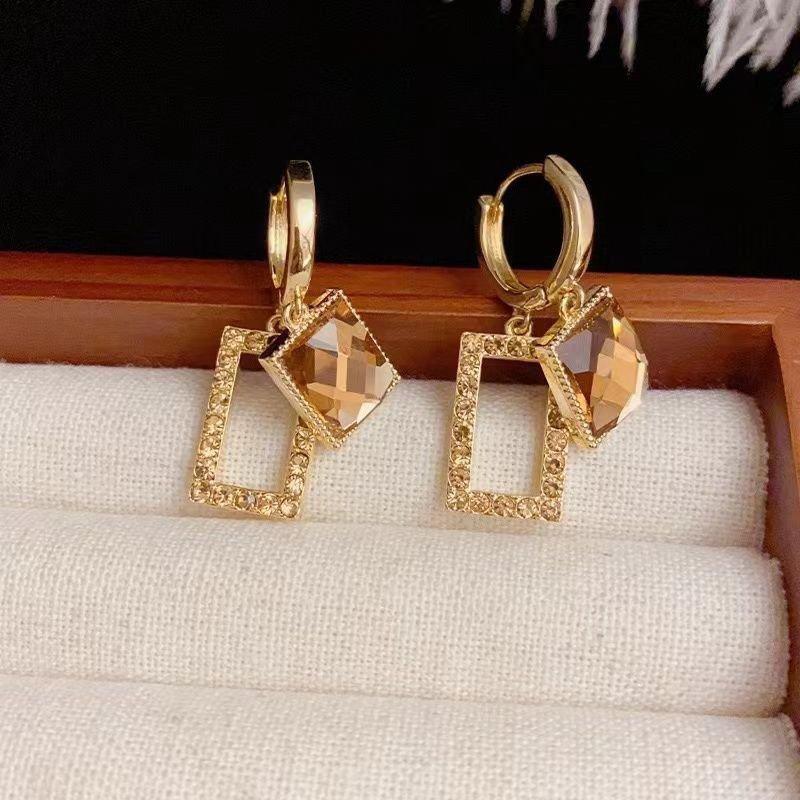 Pendientes cuadrados nuevos de alta gama con cristales de circonita Lade 2023, pendientes retro de temperamento de moda de lujo ligero