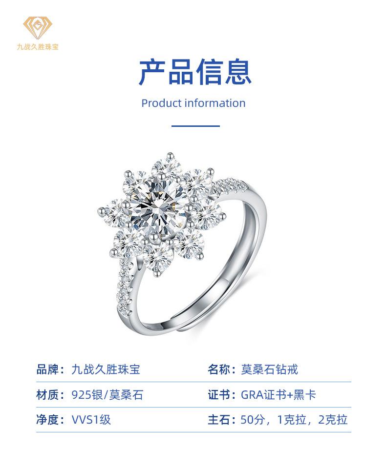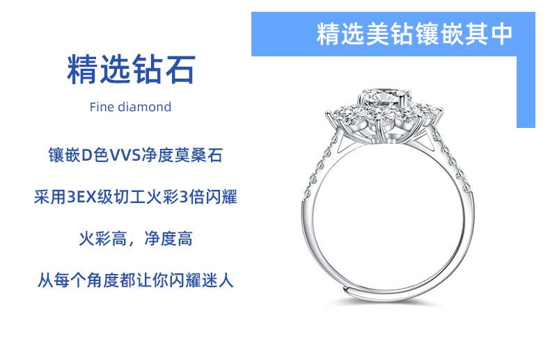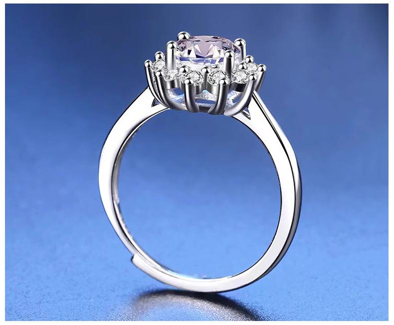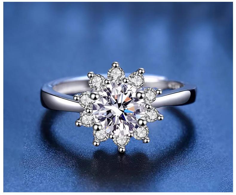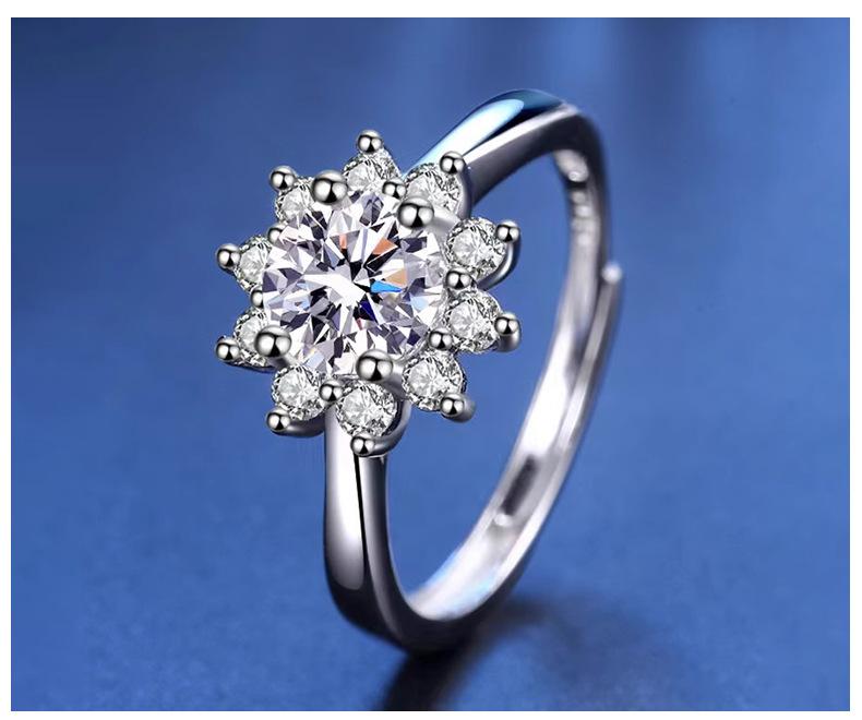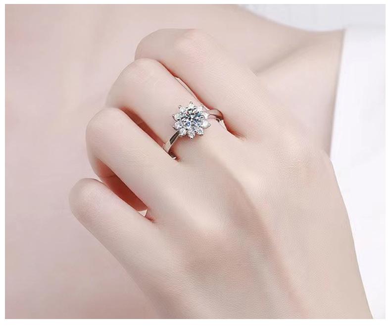 Anillo de Diamantes Girasol de Plata de Ley 925 para Mujer 1 Quilate Color D Anillo de Moissanita Apertura Anillo Ajustable Certificado