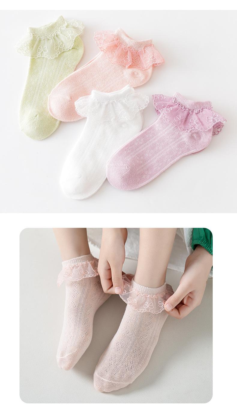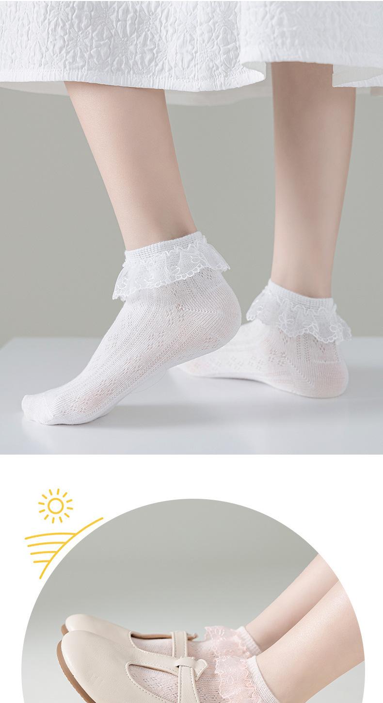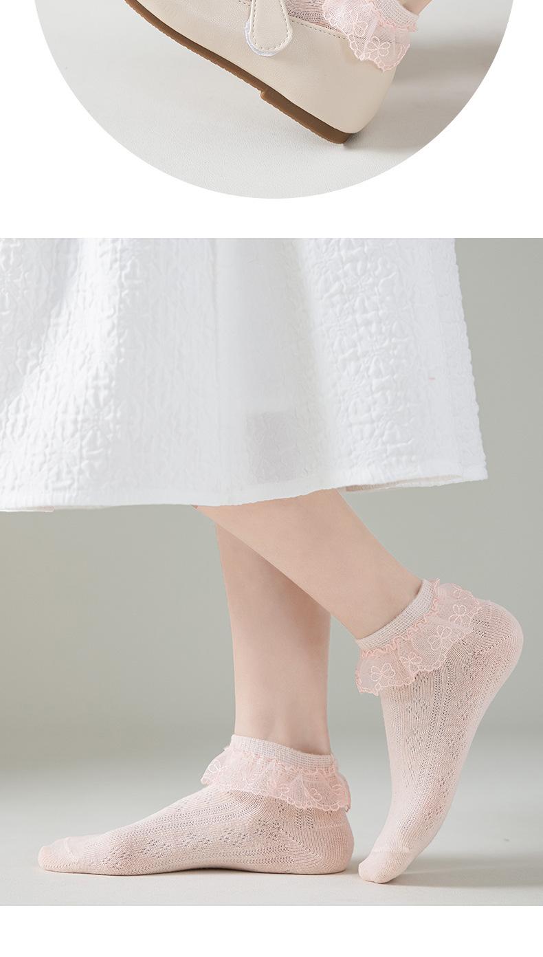 Calcetines para niños delgados transpirables de primavera y otoño de algodón elástico de malla con encaje de princesa para baile