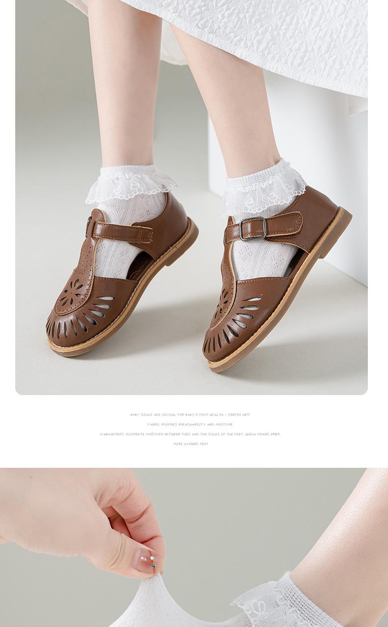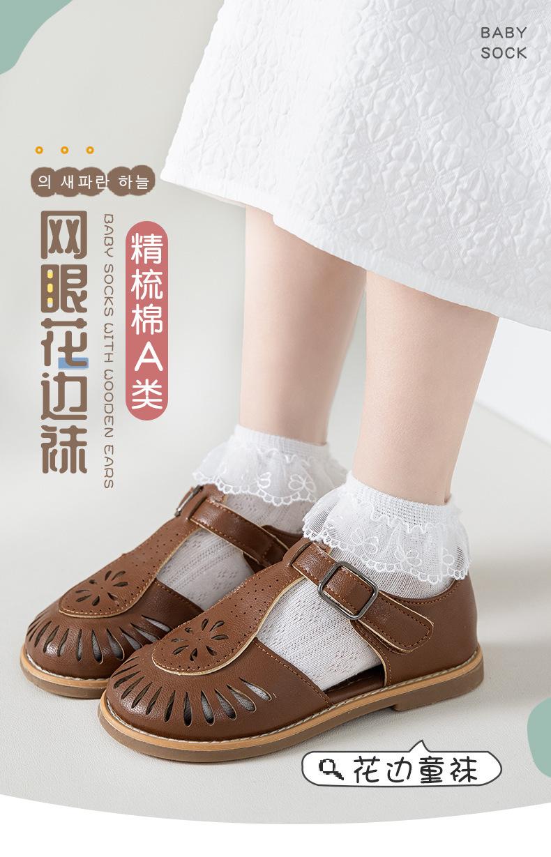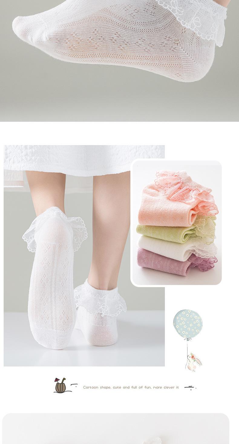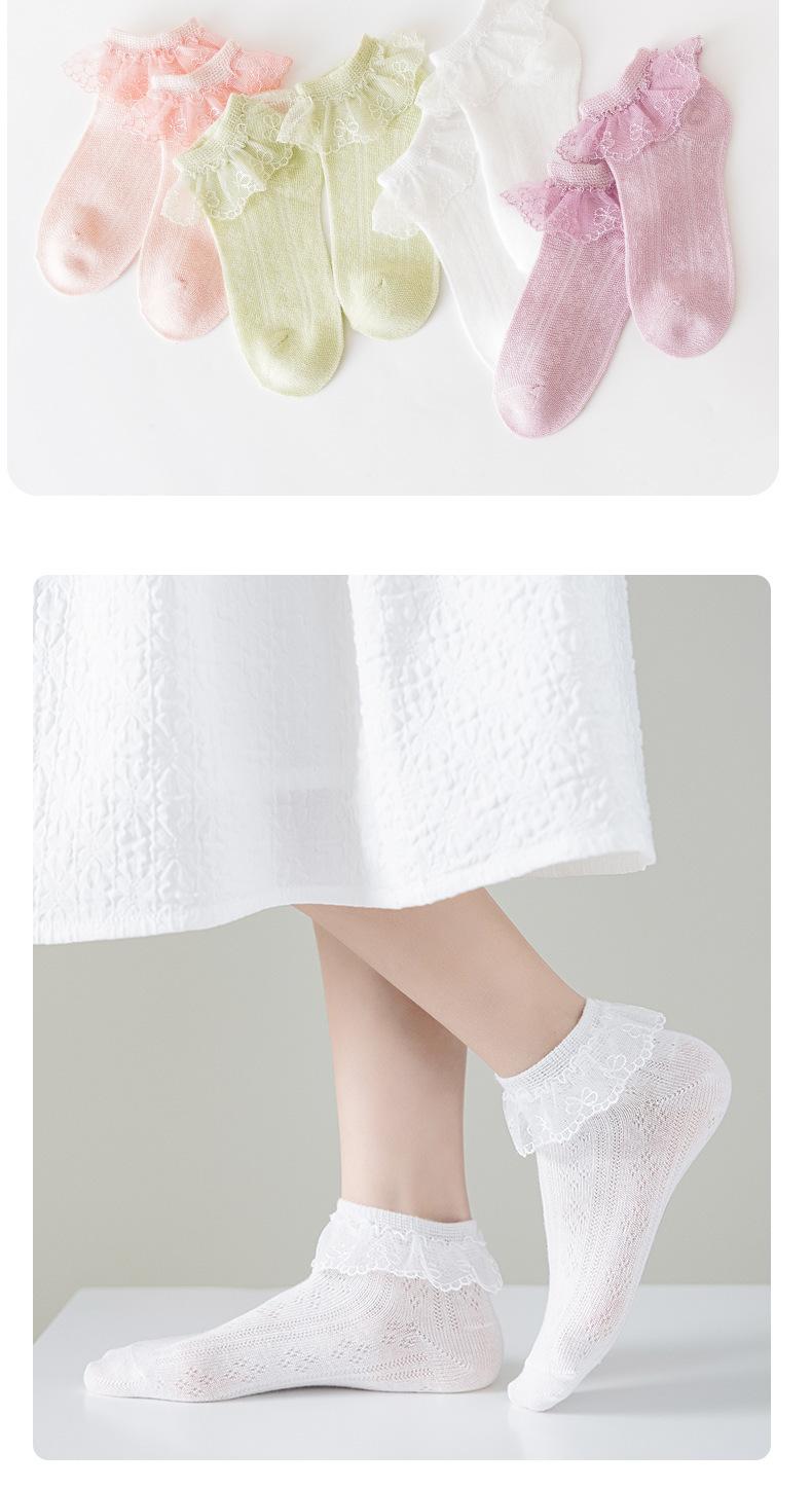 Calcetines para niños delgados transpirables de primavera y otoño de algodón elástico de malla con encaje de princesa para baile