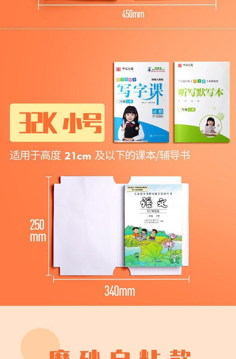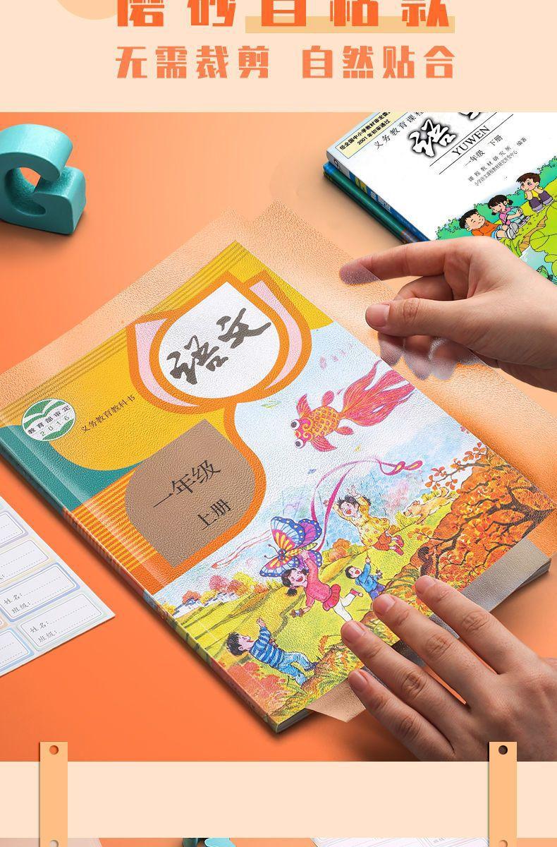 Funda de libro de papel esmerilado puro, autoadhesiva, para estudiantes de escuela primaria, 16 K, impermeable, antisuciedad, funda para libro de texto PEP