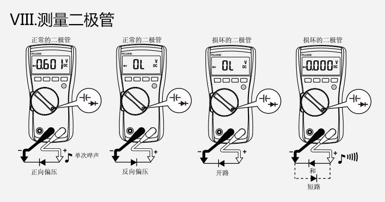 | Prueba de diodos | Rango/Resolución | 2,00 V / 0,001 V |