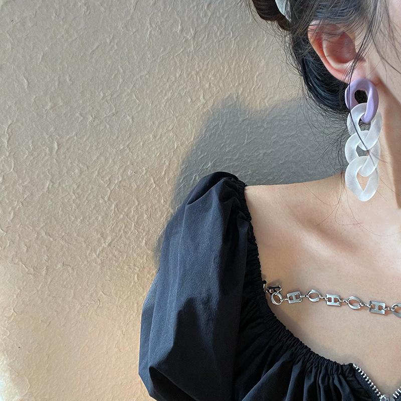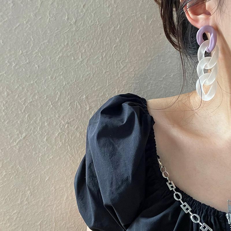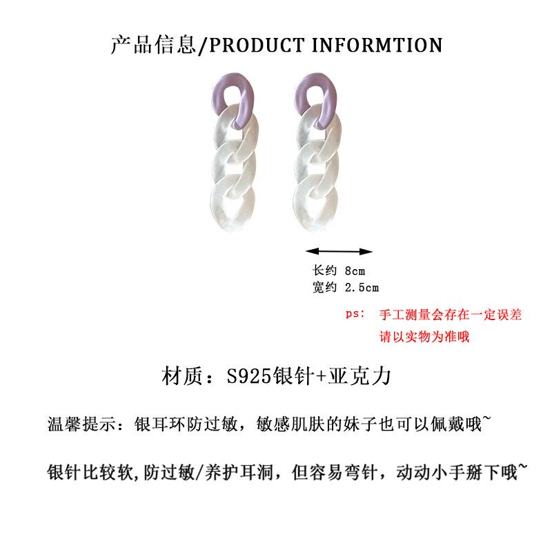 Pendientes de cadena acrílica de color fresco y pequeño con aguja de plata S925, 2021, nuevos pendientes de diseño de nicho 344