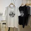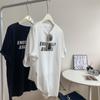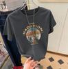 Camiseta de manga corta lavada con cuello de bolsa de algodón para mujer, novedad de verano 2023, camiseta holgada con estampado de letras, top de calle que combina con todo, tendencia