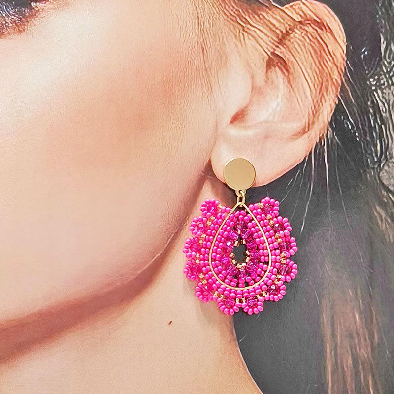Aretes europeos y americanos de alta gama nuevos aretes bohemios vintage de cuentas de arroz aretes de personalidad original para mujer aretes explosión