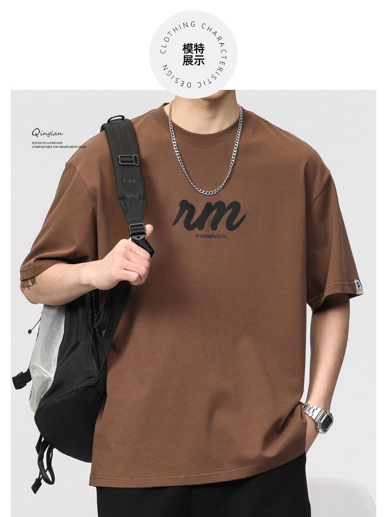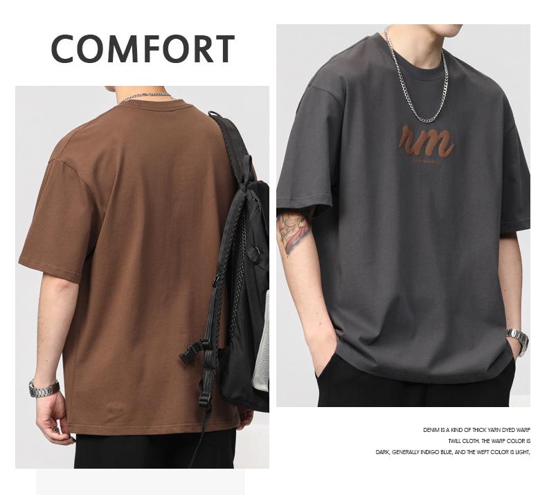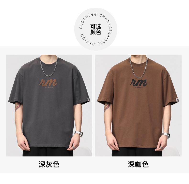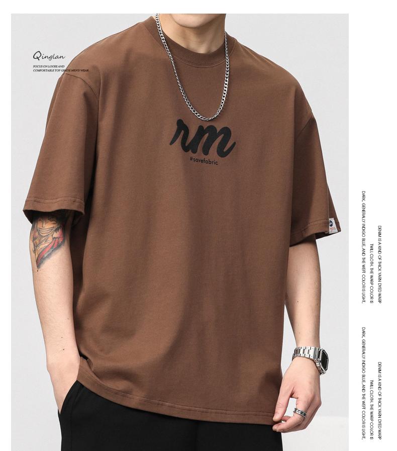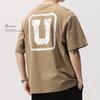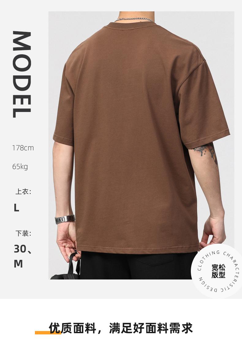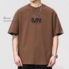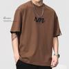 Camiseta de manga corta de verano para hombre, estilo americano, con estampado sencillo, color marrón, holgada, cuello redondo, de marca moderna.