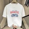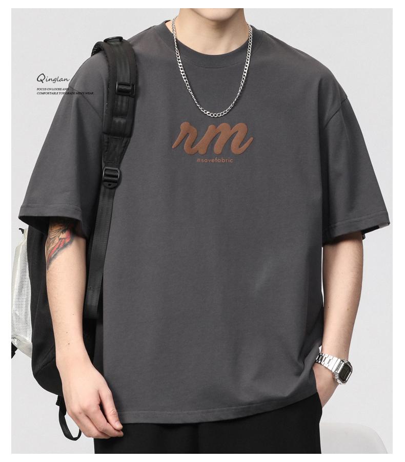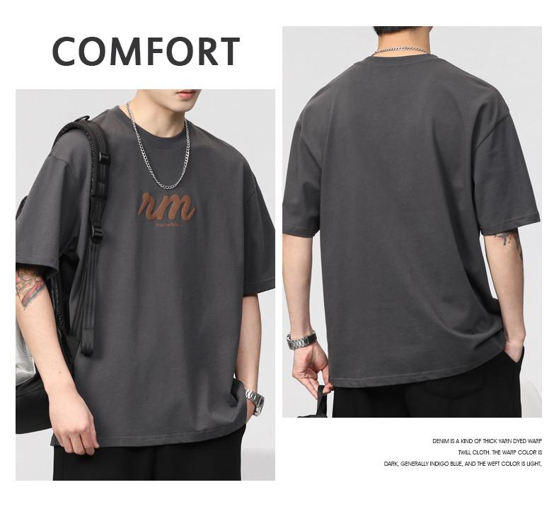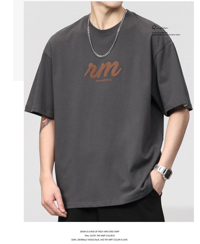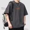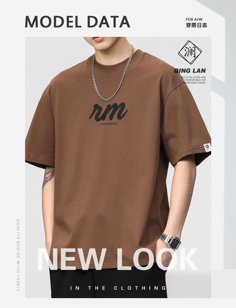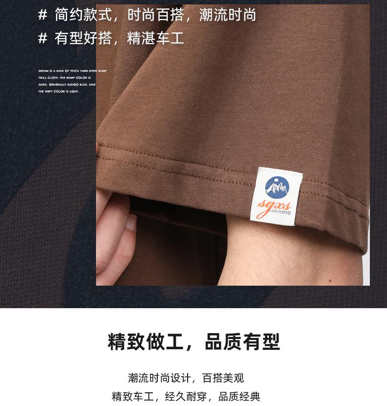 Camiseta de manga corta de verano para hombre, estilo americano, con estampado sencillo, color marrón, holgada, cuello redondo, de marca moderna.