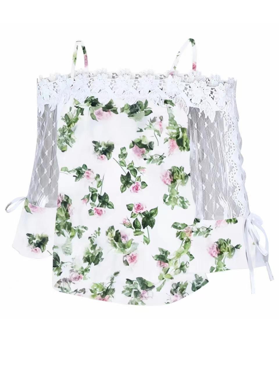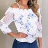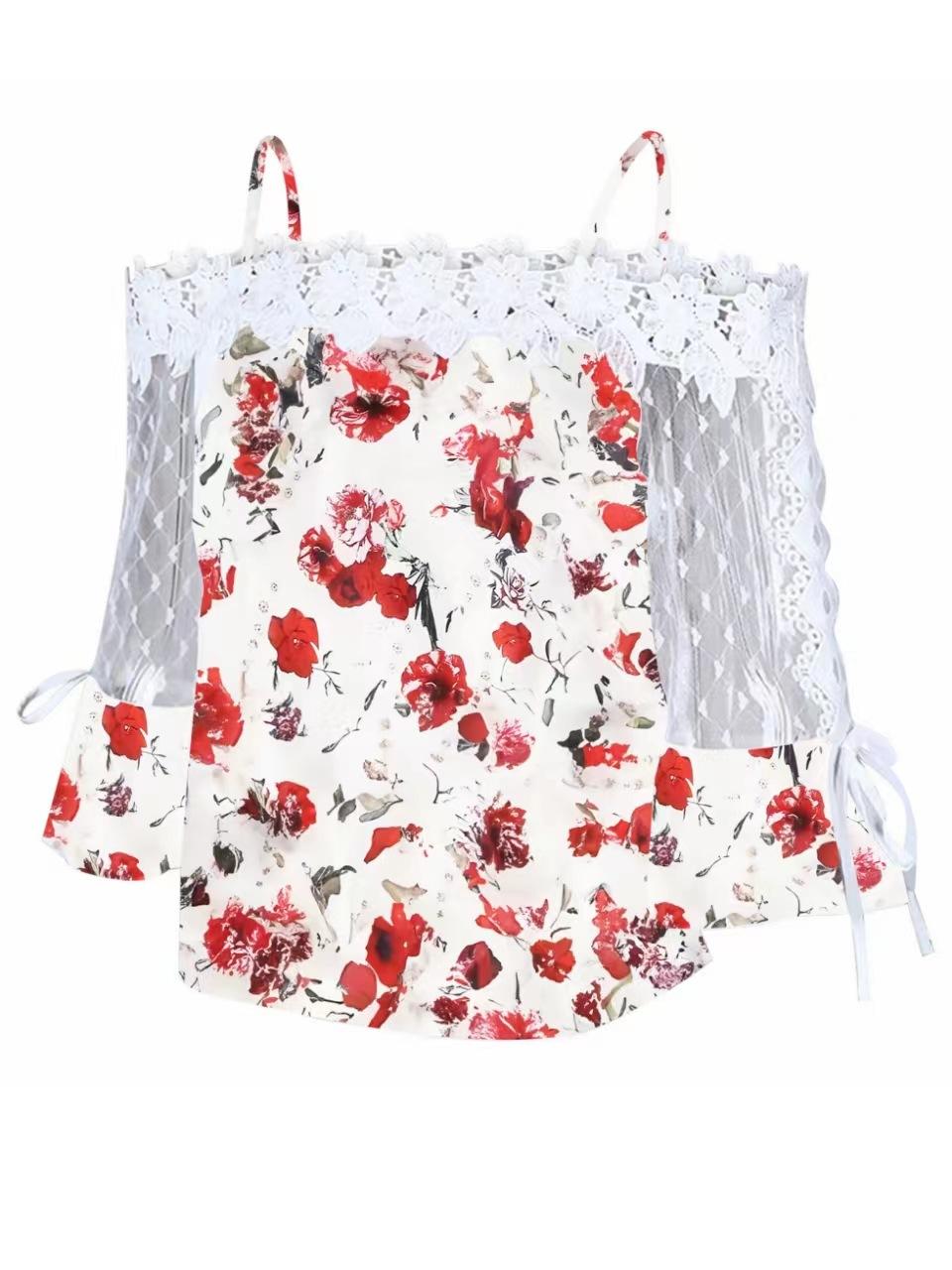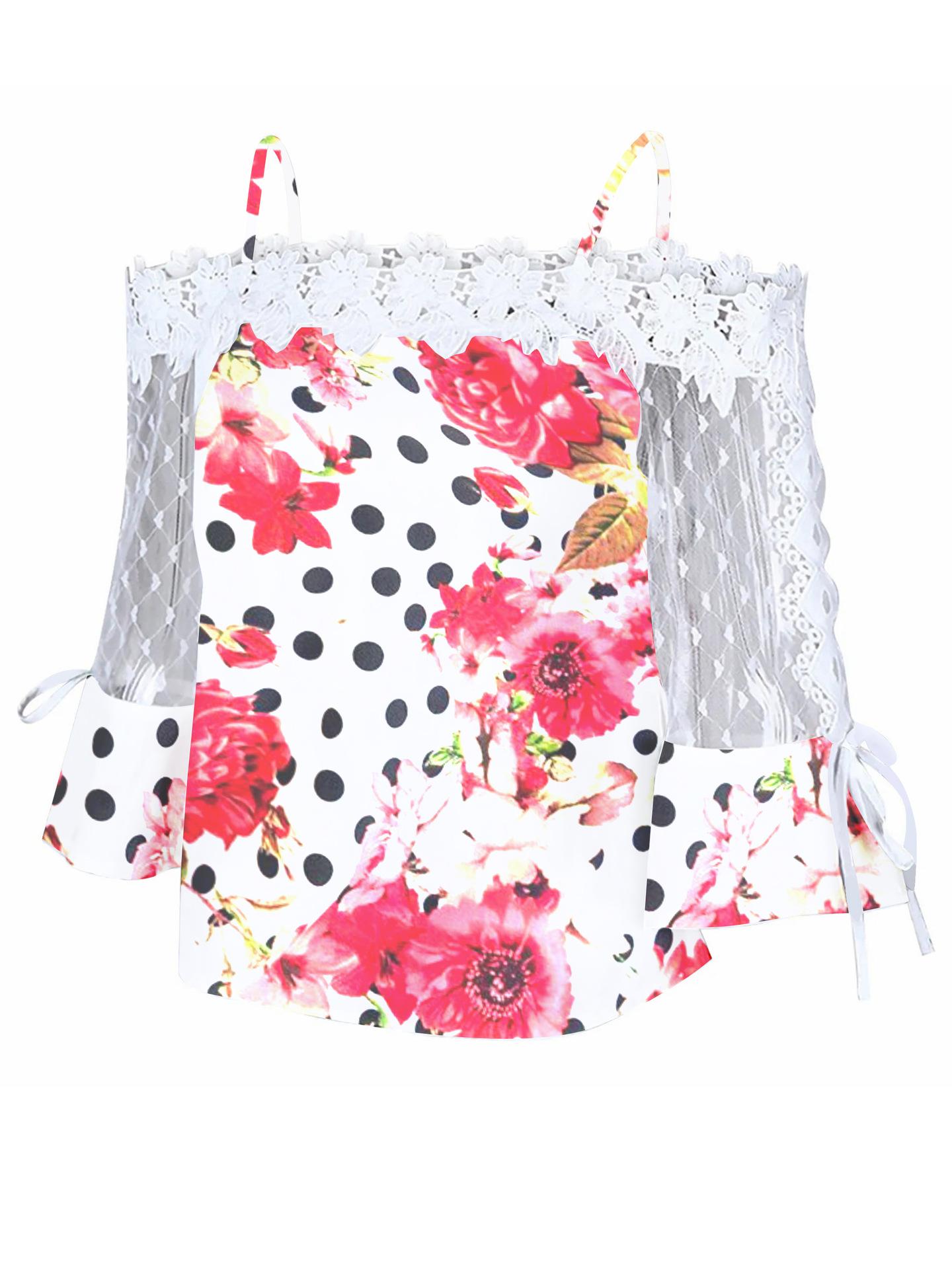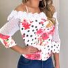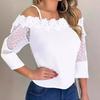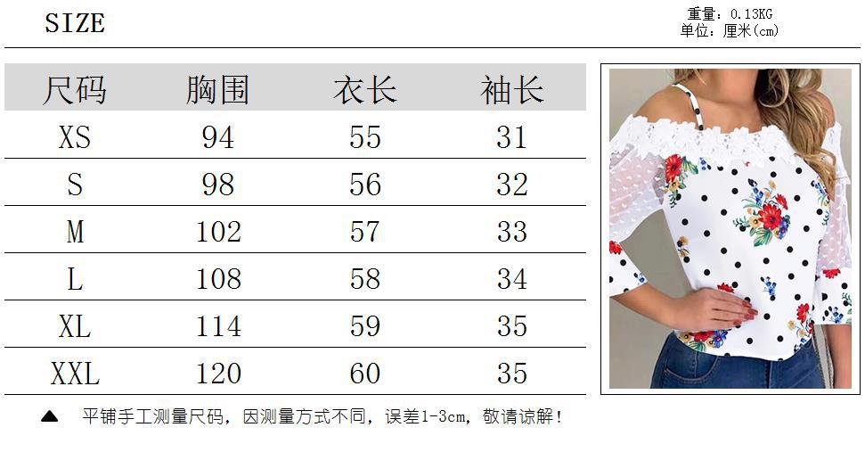 Top de encaje con costuras de malla con estampado de puntos transfronterizos de Amazon de Europa y América de verano 2024