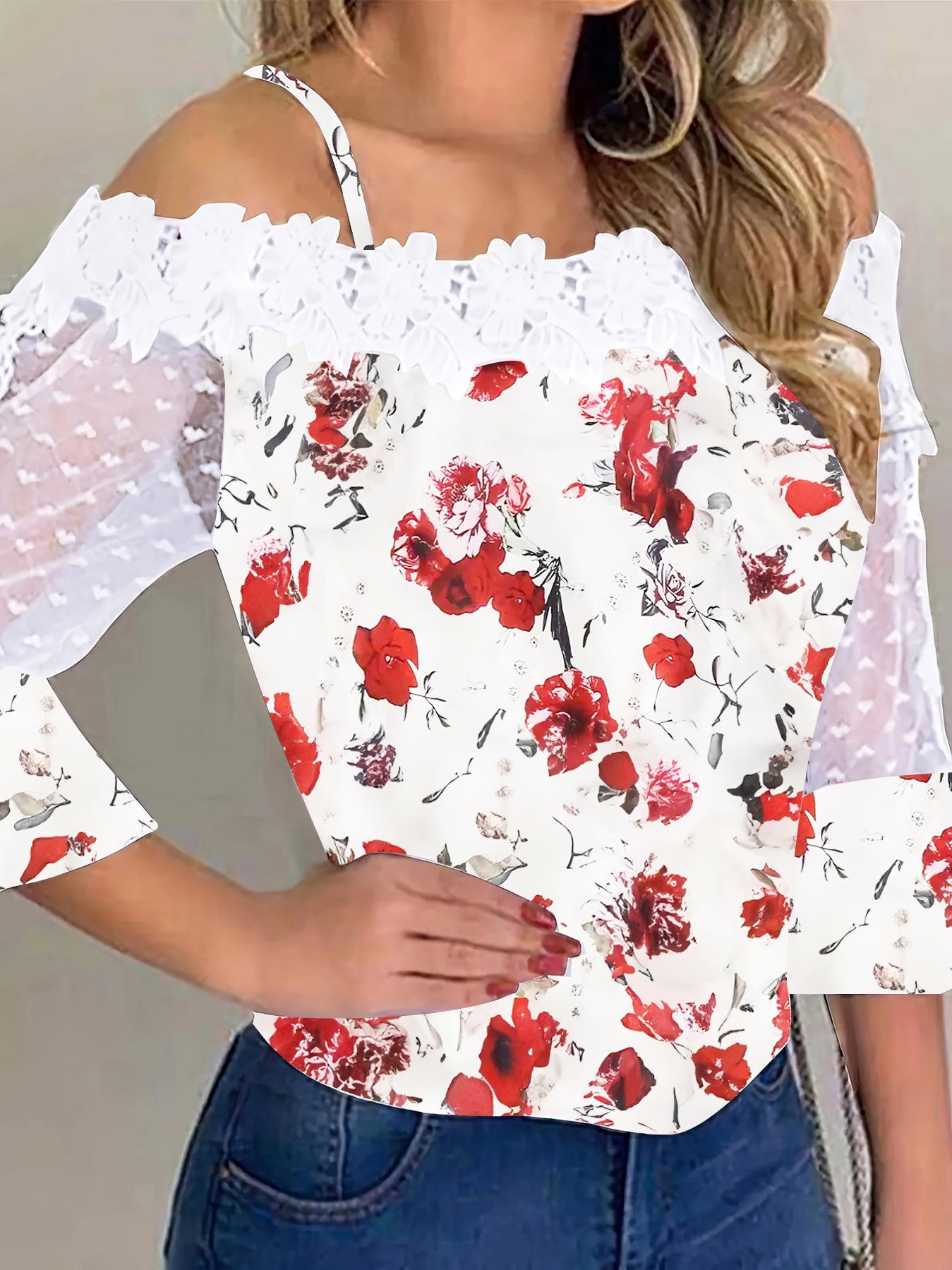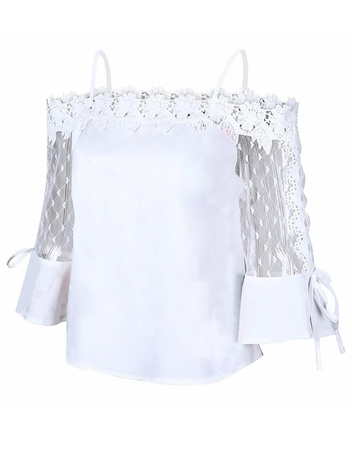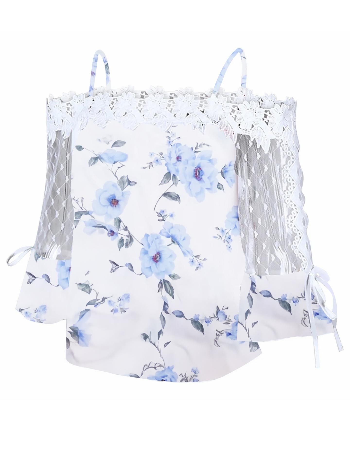 Top de encaje con costuras de malla con estampado de puntos transfronterizos de Amazon de Europa y América de verano 2024