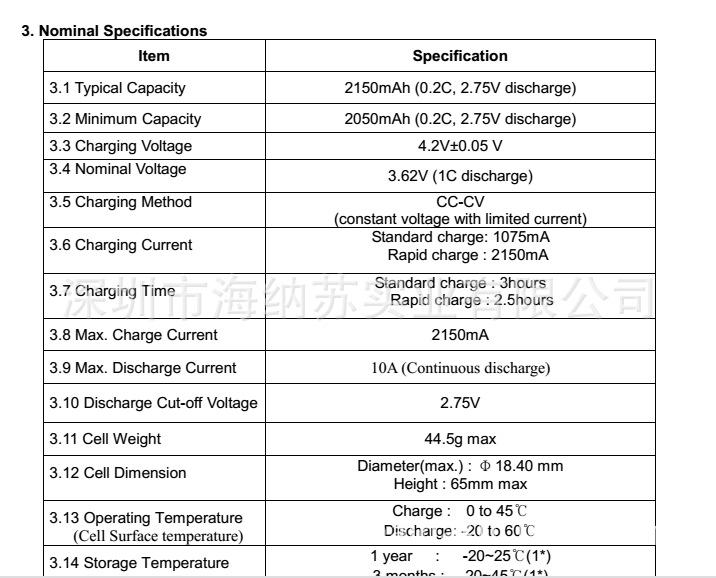 Estándar de carga y descarga: más de 1000 veces, voltaje de corte de carga 4,2 V, voltaje de corte de descarga 2,75 V