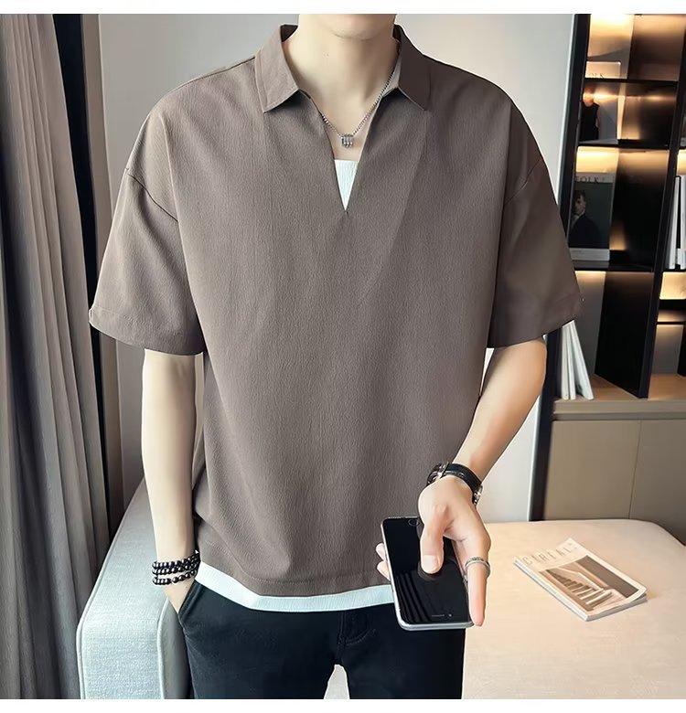 Camiseta de marca de moda para hombre, nueva camiseta de verano de manga corta holgada, camiseta básica de media manga, 2023