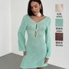 Nuevo vestido de playa europeo y americano color sólido top de tubo sexy tejido calado blusa de protección solar Biji blusa falda