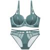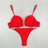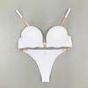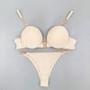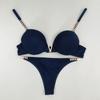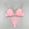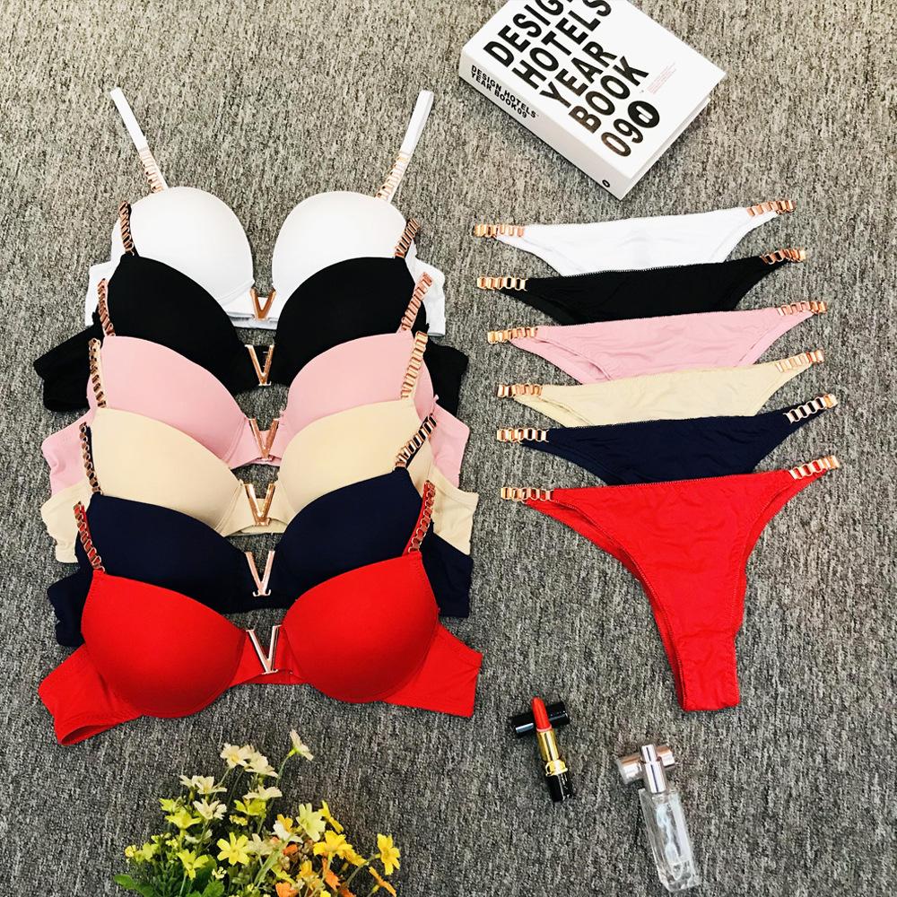 Conjunto de Brasier Estilo Europeo y Americano Transfronterizo con Varilla Metálica en Forma de V Lencería para Mujer, Panties de Cintura Baja con Cadena Panties Tanga, Push-Up