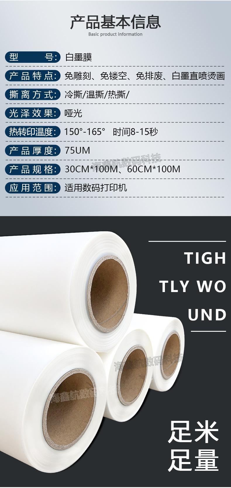 Película de Transferencia de Calor con Tinta Blanca Película de Impresión PET a Base de Agua Película de Liberación para Impresión Transferencia de Calor Offset Transferencia de Calor Desprendible en Caliente y Frío
