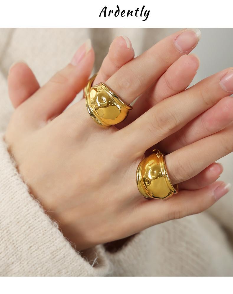 Anillo abierto simple chapado en oro de acero de titanio exagerado con personalidad combinable de nuevo estilo francés, joyería de nicho para mujer