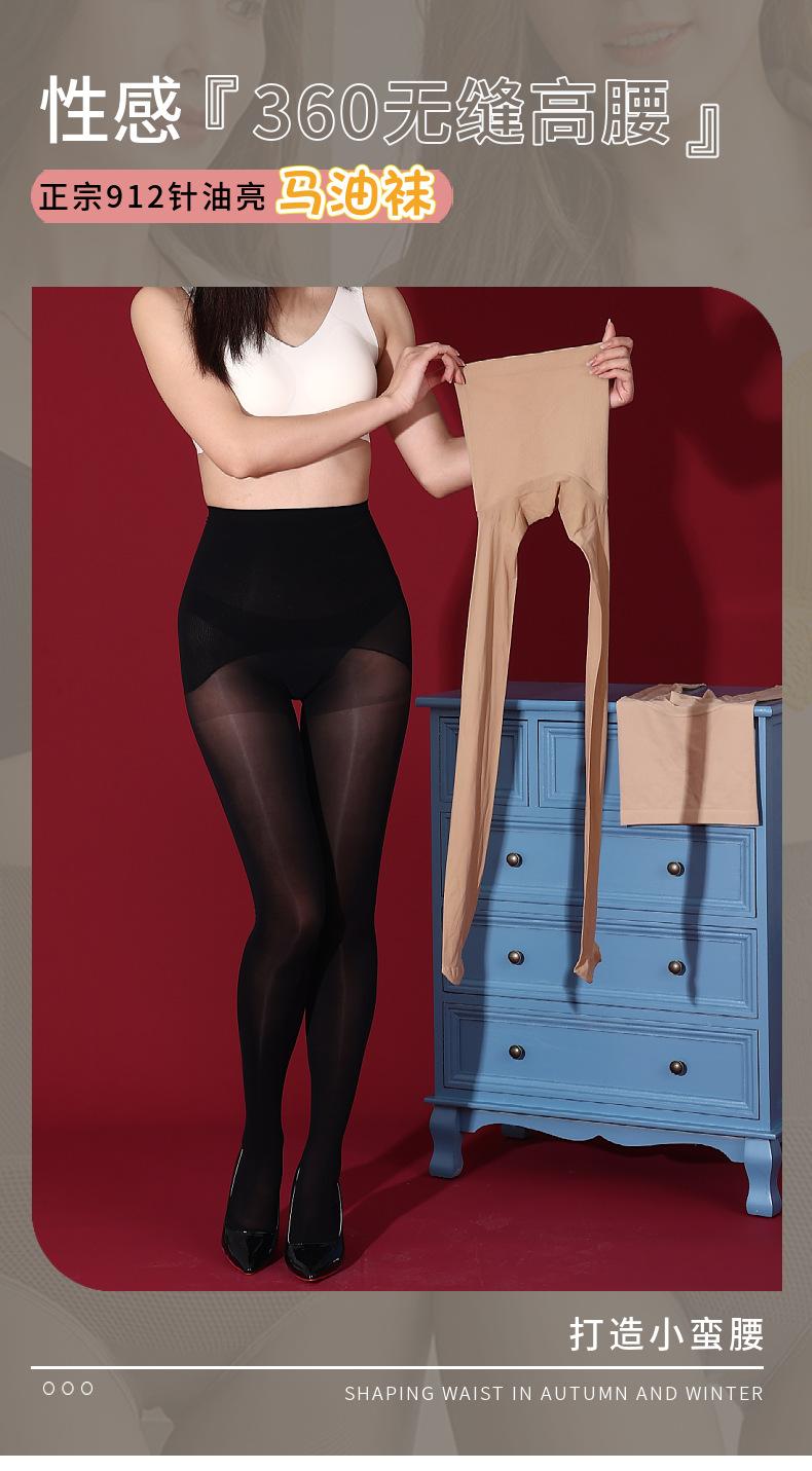 360 Medias de Entrepierna Sin Costuras Aceite de Caballo Seda Aceite Medias Brillantes Cintura Alta Vientre Sin Costuras Delgadas Cadera de Manzana Pantimedias