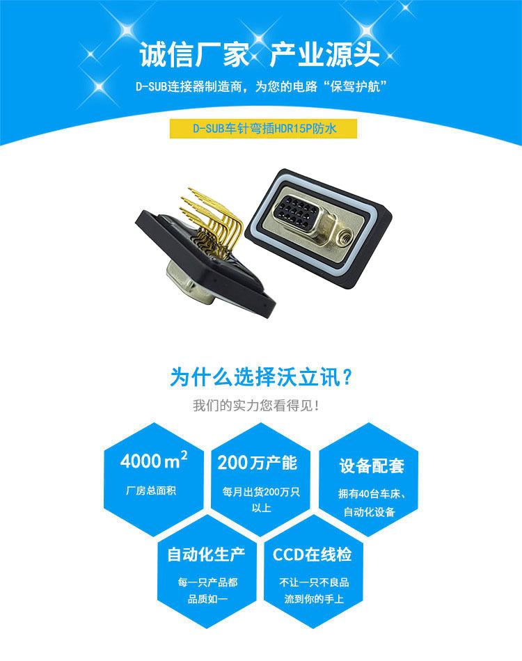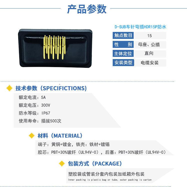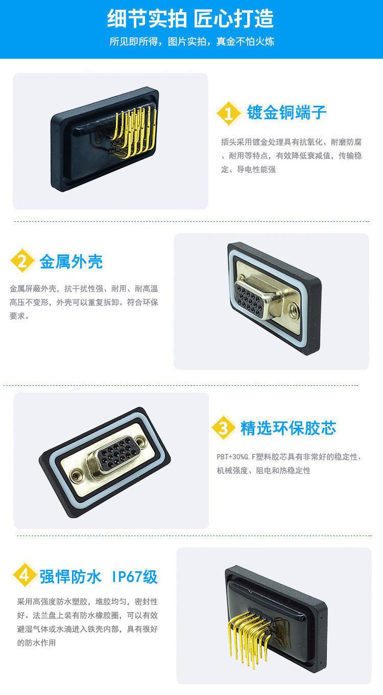Conector HDB15 impermeable, macho y hembra, tipo cable de soldadura, conector de puerto serie de 15 pines de tres filas, terminal de pin sólido chapado en oro