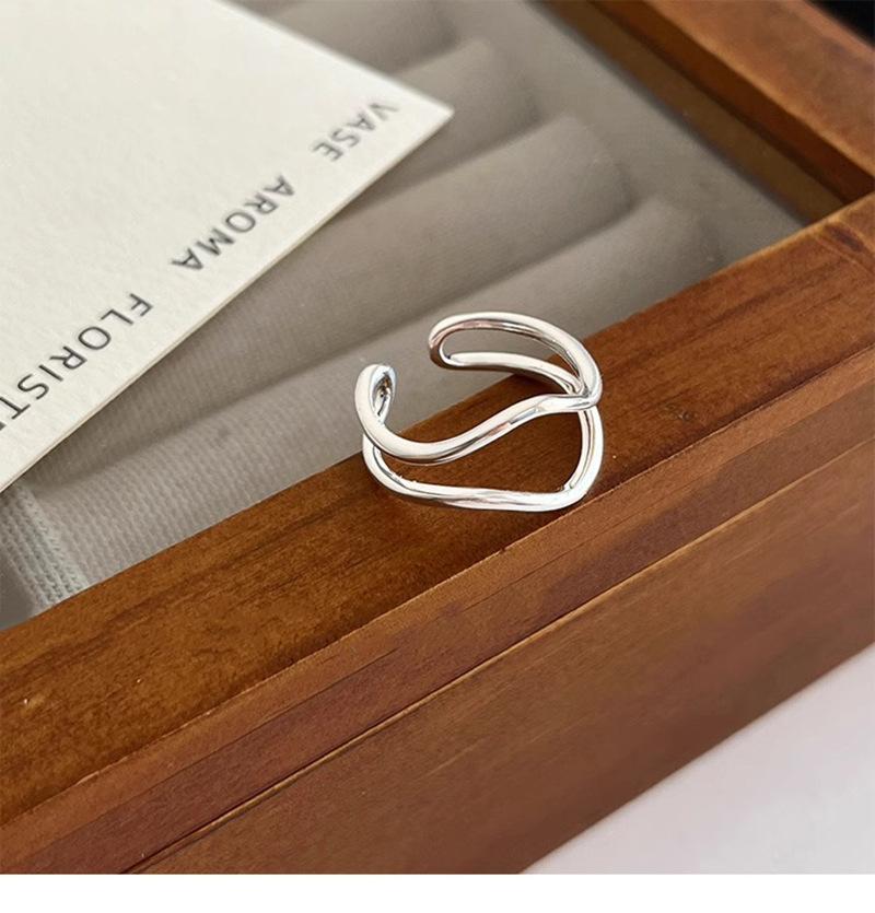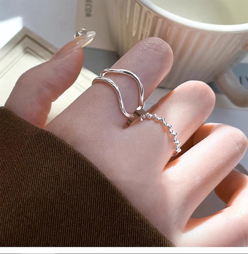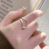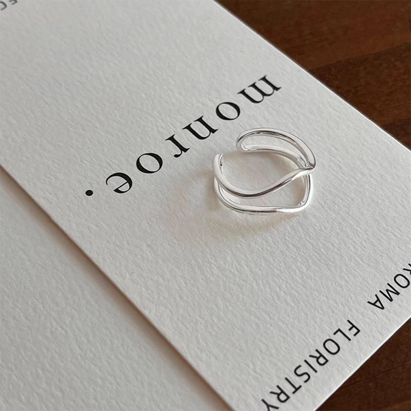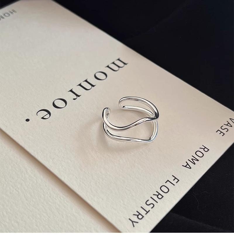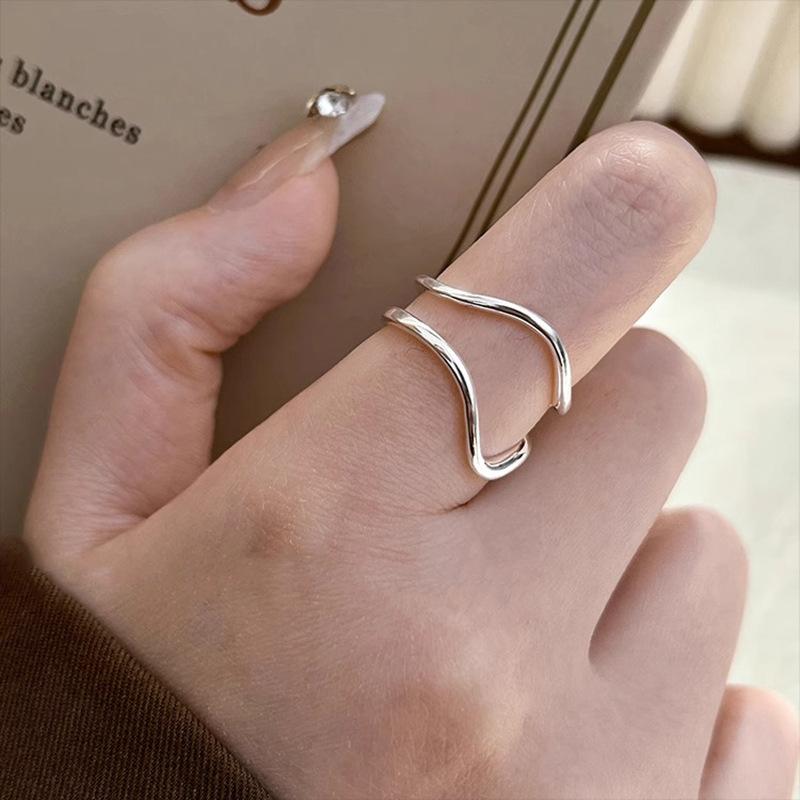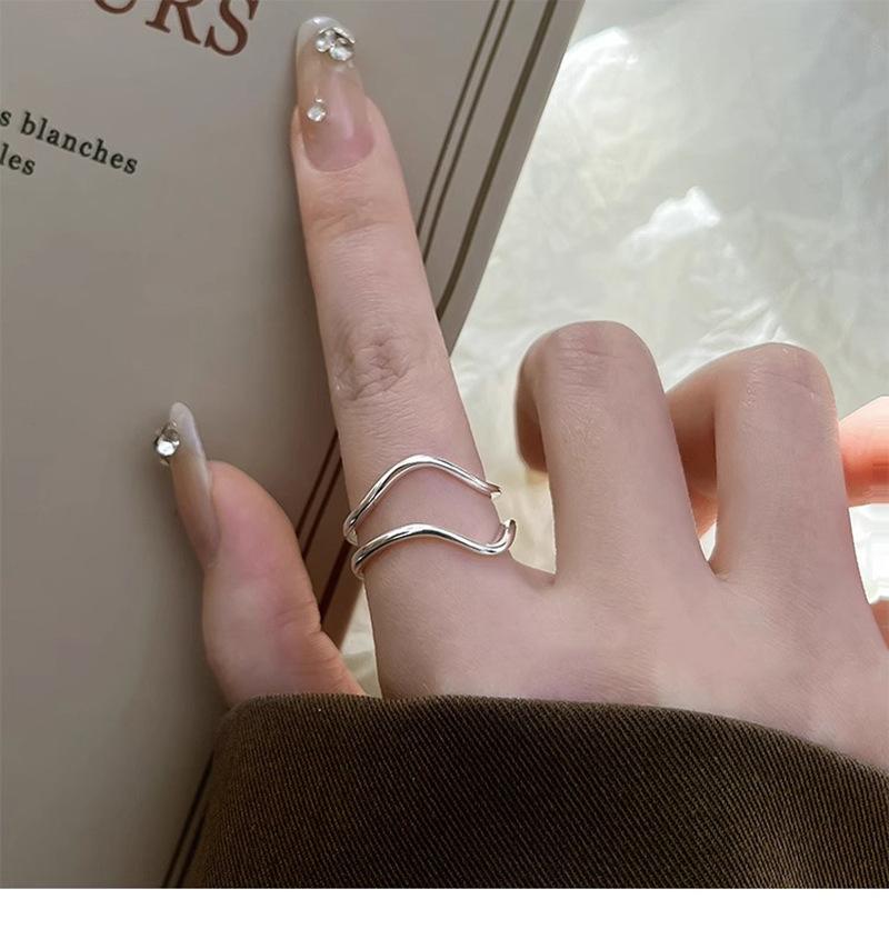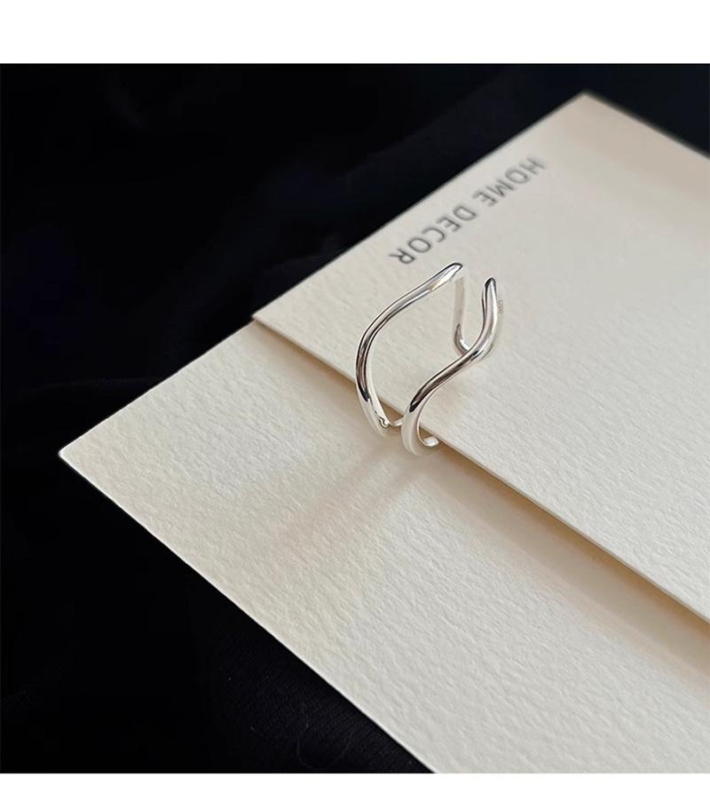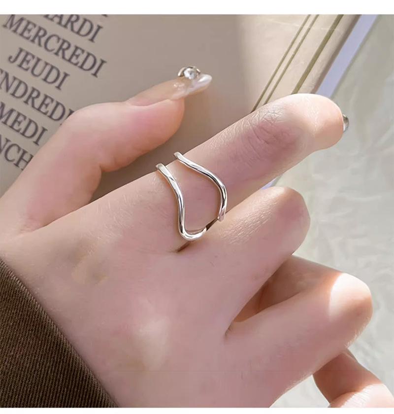 Anillo de onda de doble capa Anillo liso de diseño de nicho simple para mujer Anillo de cola abierto de línea metálica irregular ajustable