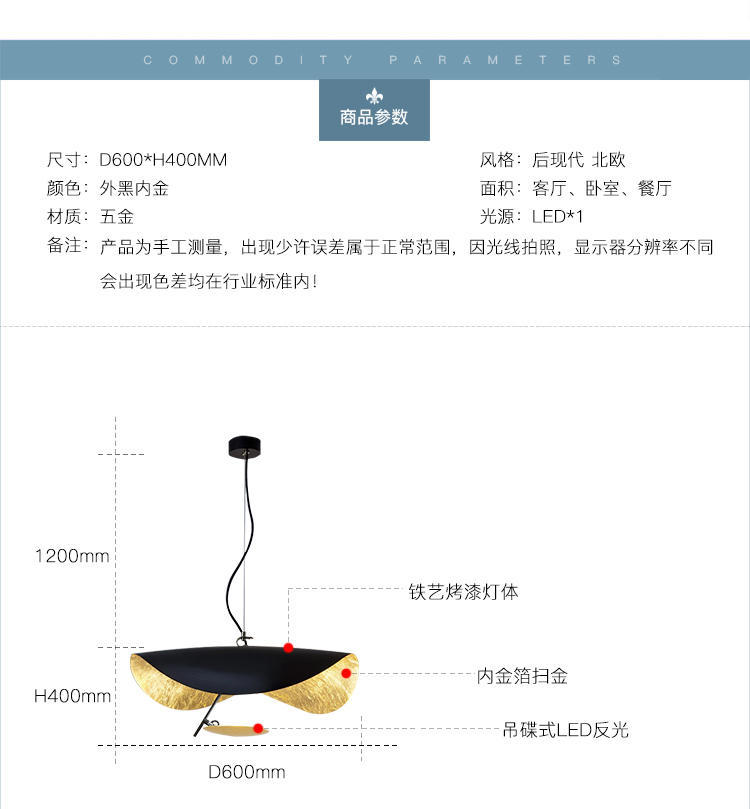 Warm Light 60cm black outside and gold inside