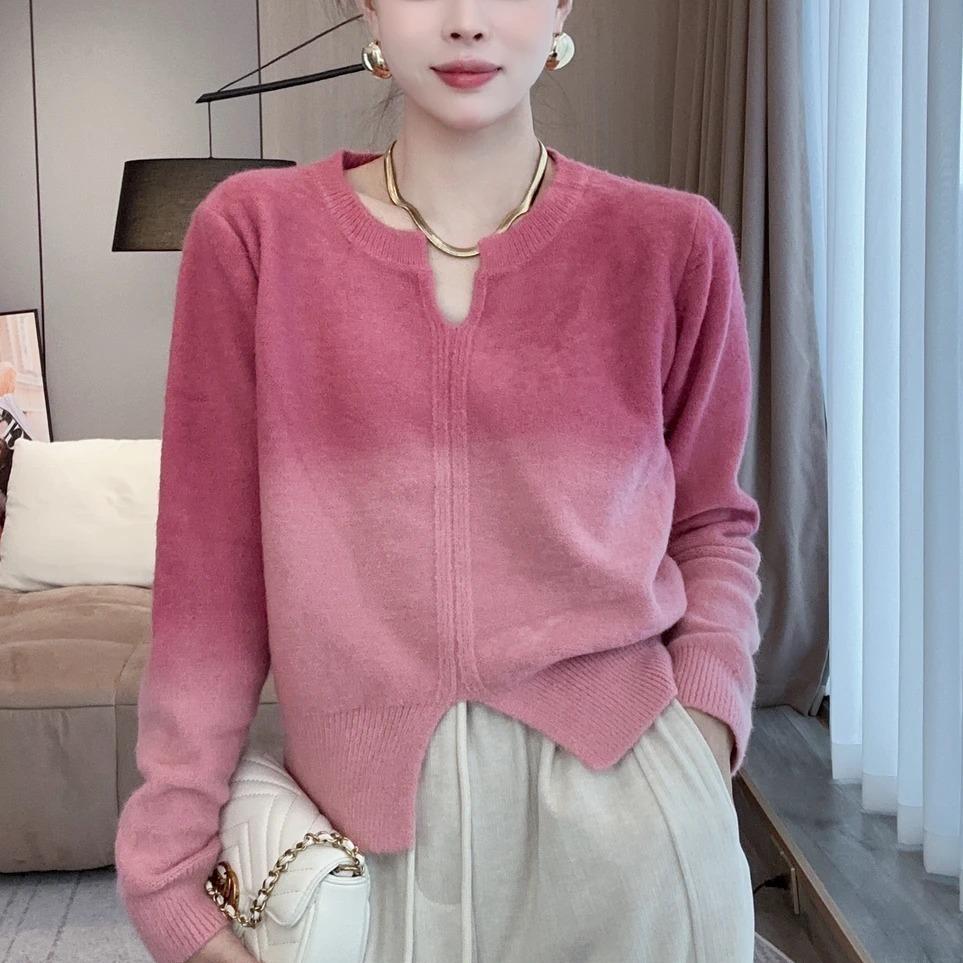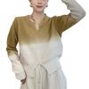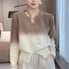 Suéter suave y glutinoso de color degradado dulce con cuello en V para mujer 2024 Primavera Nuevo estilo perezoso suéter suave de estilo occidental