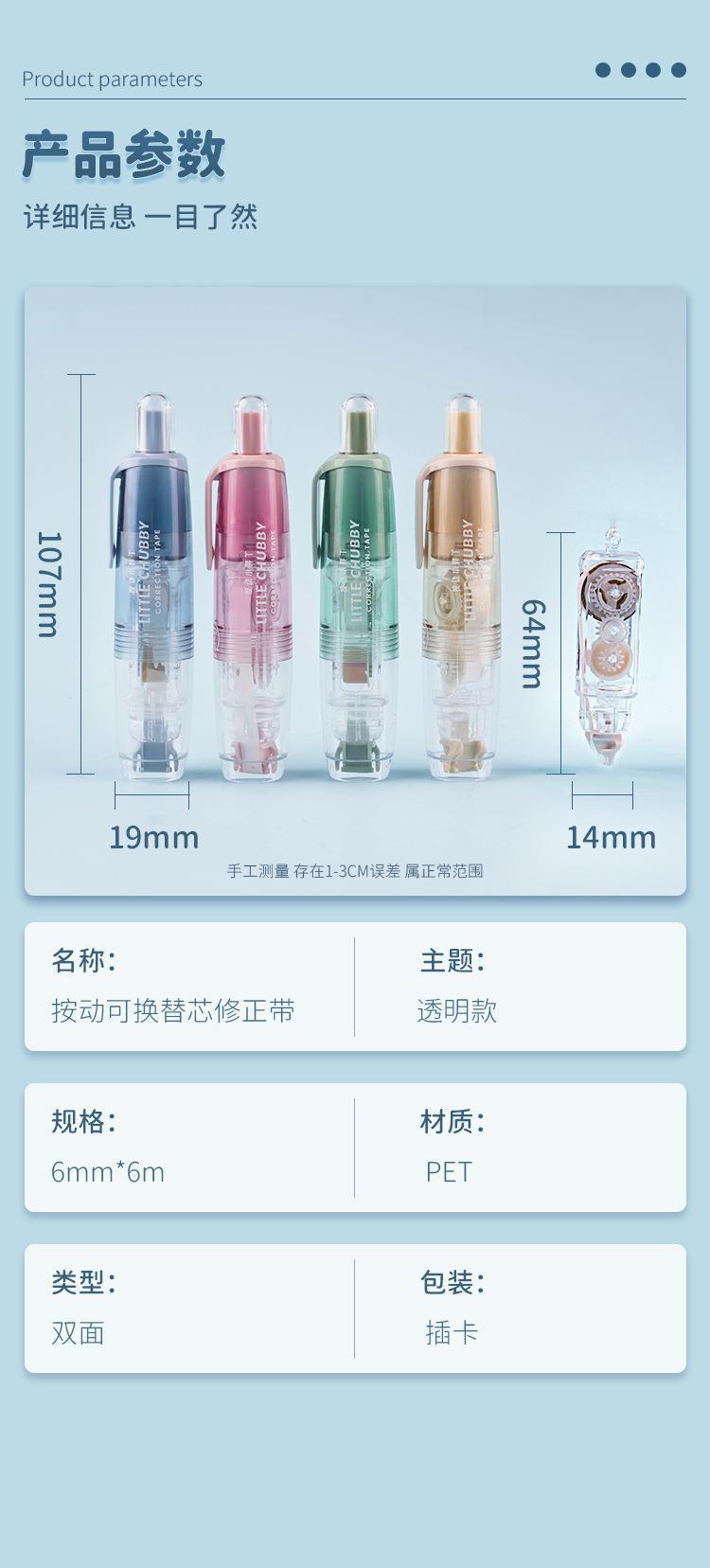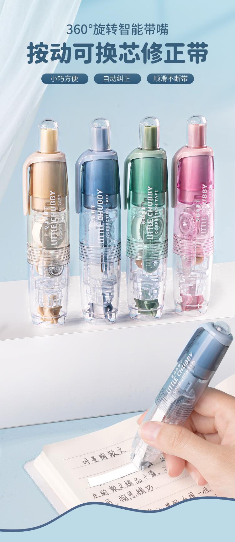 Cinta Correctora Tipo Push, Núcleo Pequeño Reemplazable, Cinta Correctora Tipo Push, Cinta Correctora Transparente de Gran Capacidad, Portátil