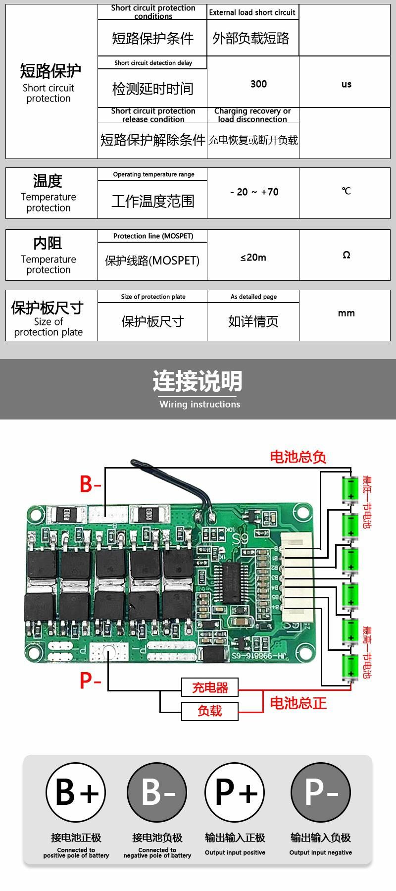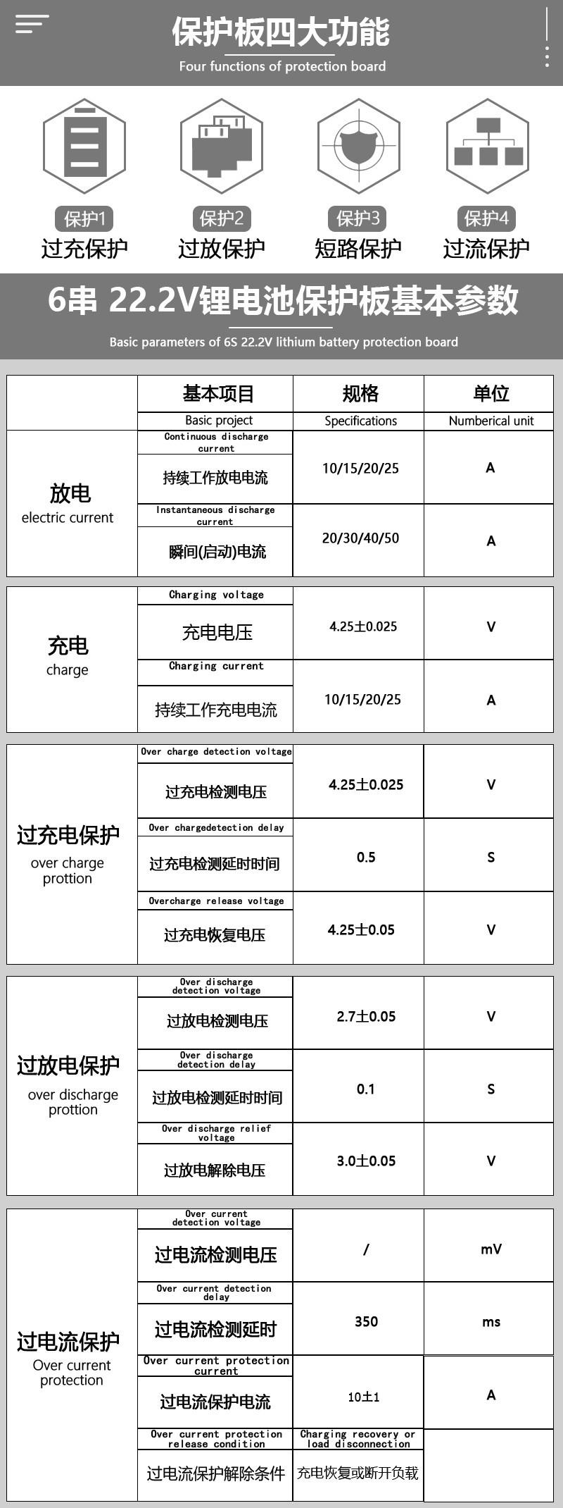 Placa de protección de batería para silla de ruedas eléctrica, 6 baterías de polímero 18650 de 22,2 V, alta corriente, 10 A, 15 A, 20 A y 25 A.
