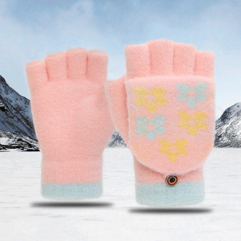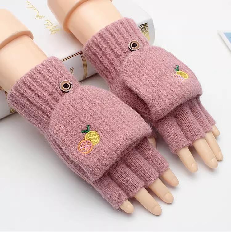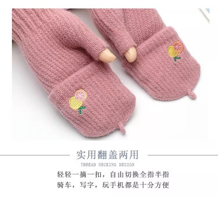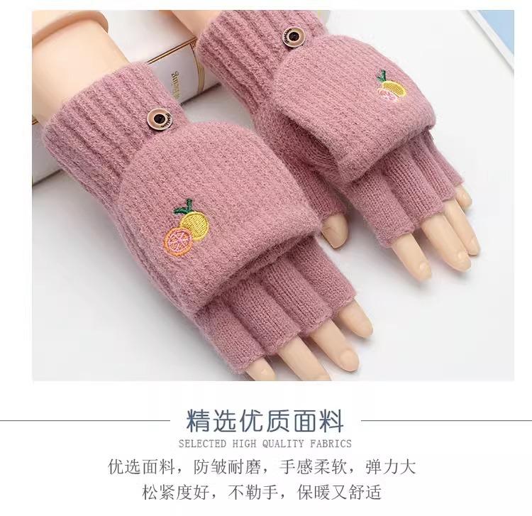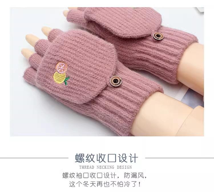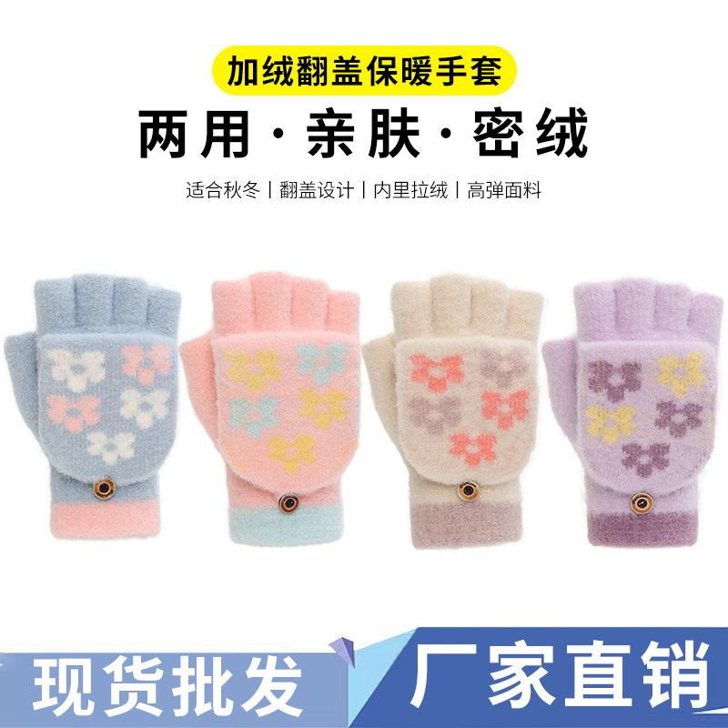 Guantes abatibles de invierno para mujer, versión coreana de tejido cálido de Joker, para ciclismo, estudiantes, escritura, medio dedo, forro polar, guantes de pantalla táctil, venta al por mayor
