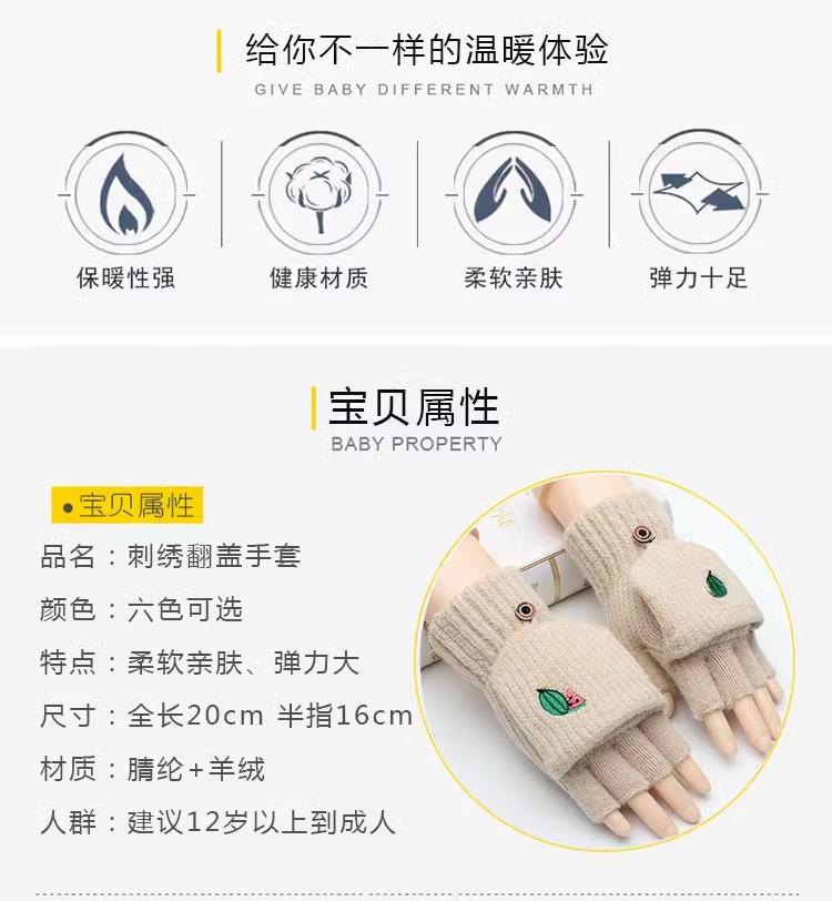 Flip gloves men's and women's autumn and winter writing half-finger open-finger gloves
