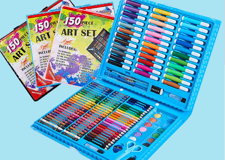 Juego de lápices de acuarela para niños, caja de herramientas de pintura combinada, 150 piezas, caja de regalo de pintura de color, juguetes de texto