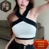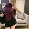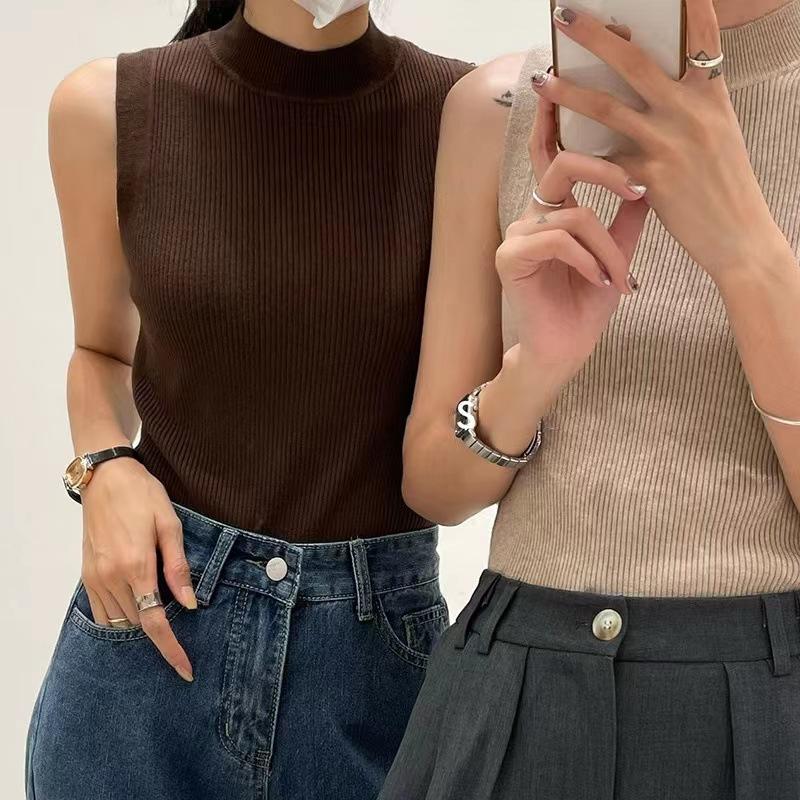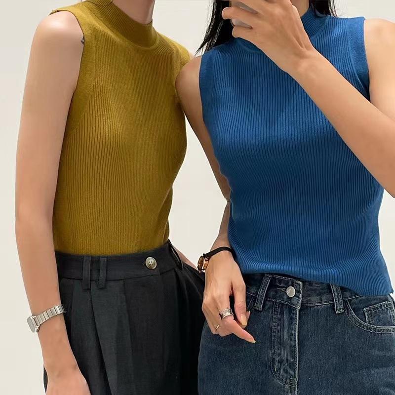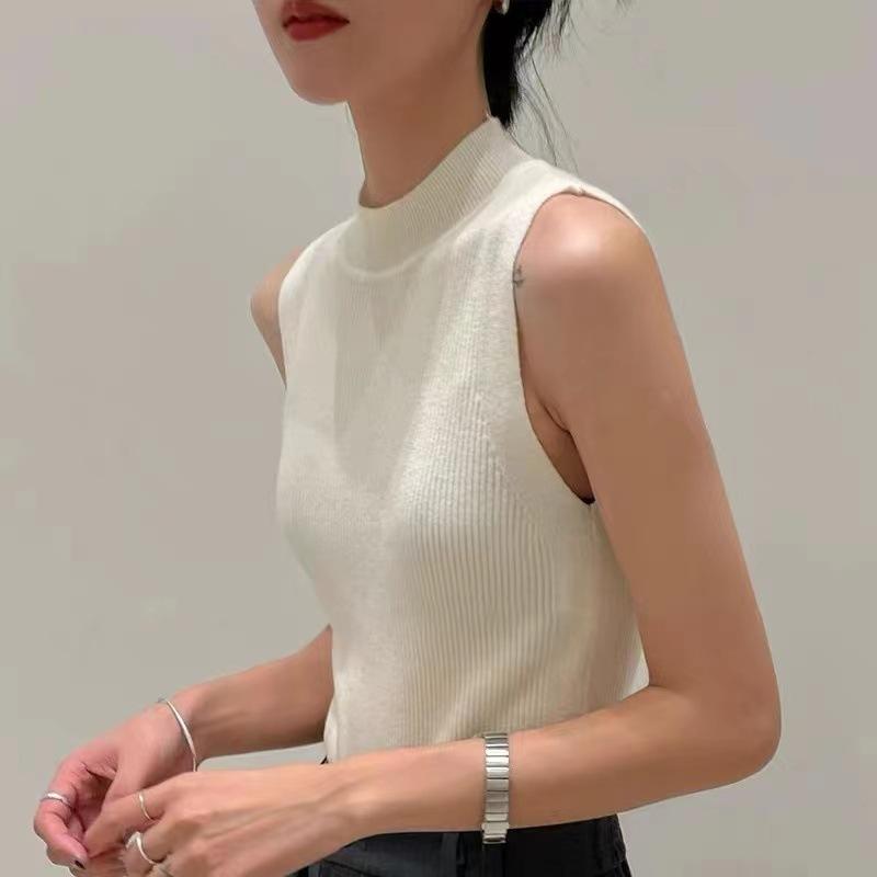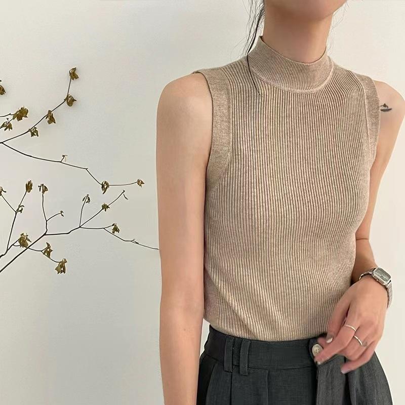 Camisola Negra Transfronteriza para Mujer Ropa Exterior Cuello Medio Tortuga Camiseta Básica para Mujer Top sin Mangas Suéter para Mujer Verano