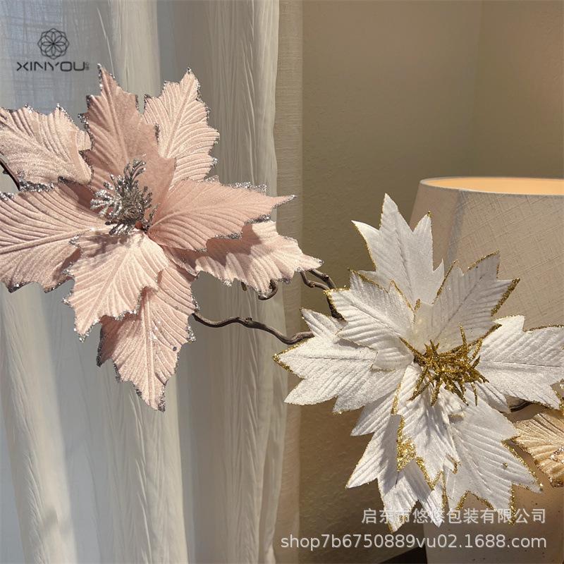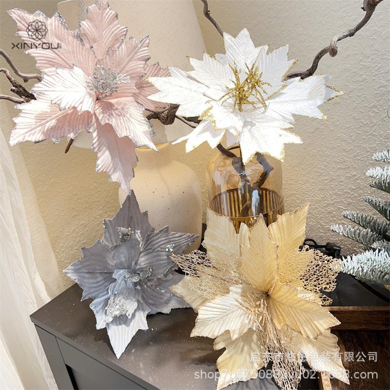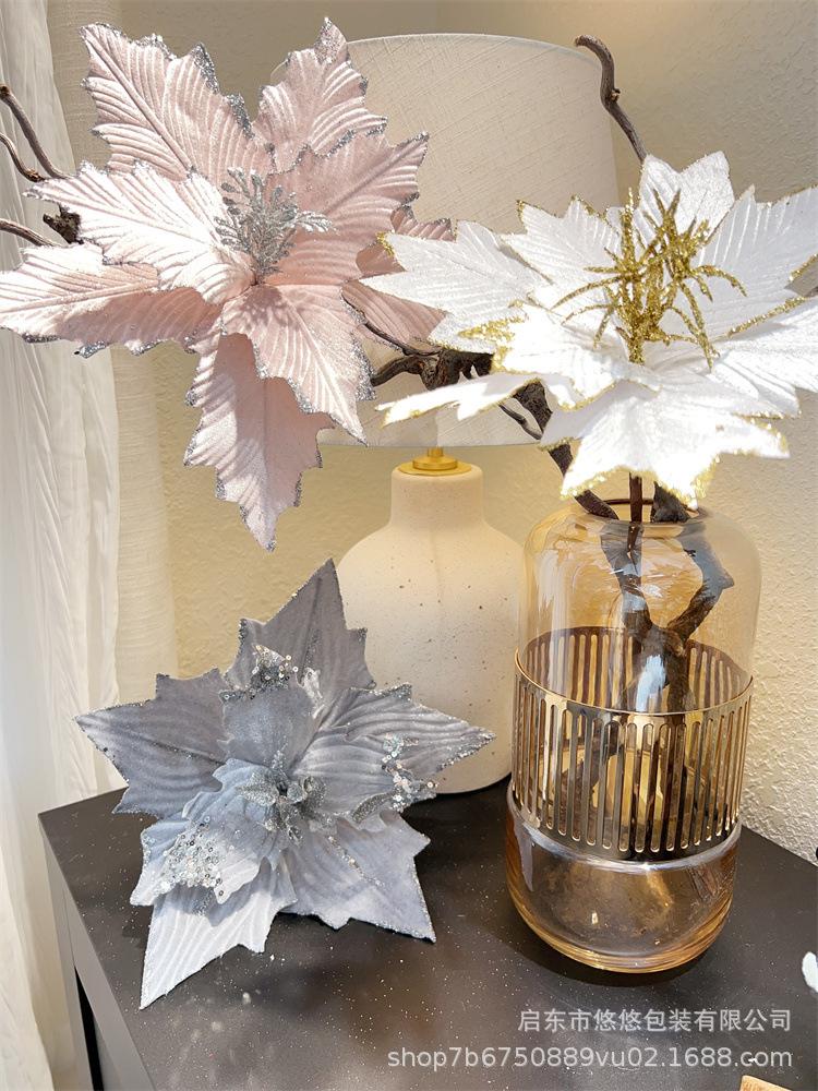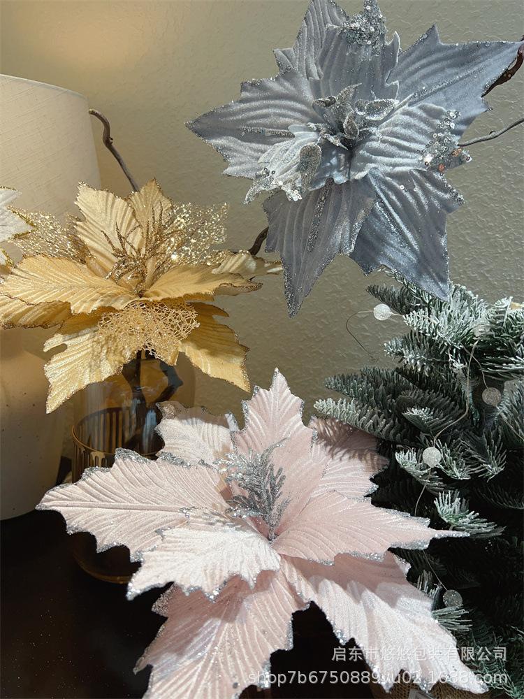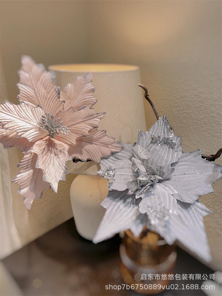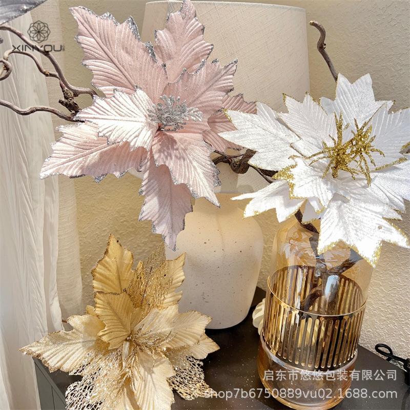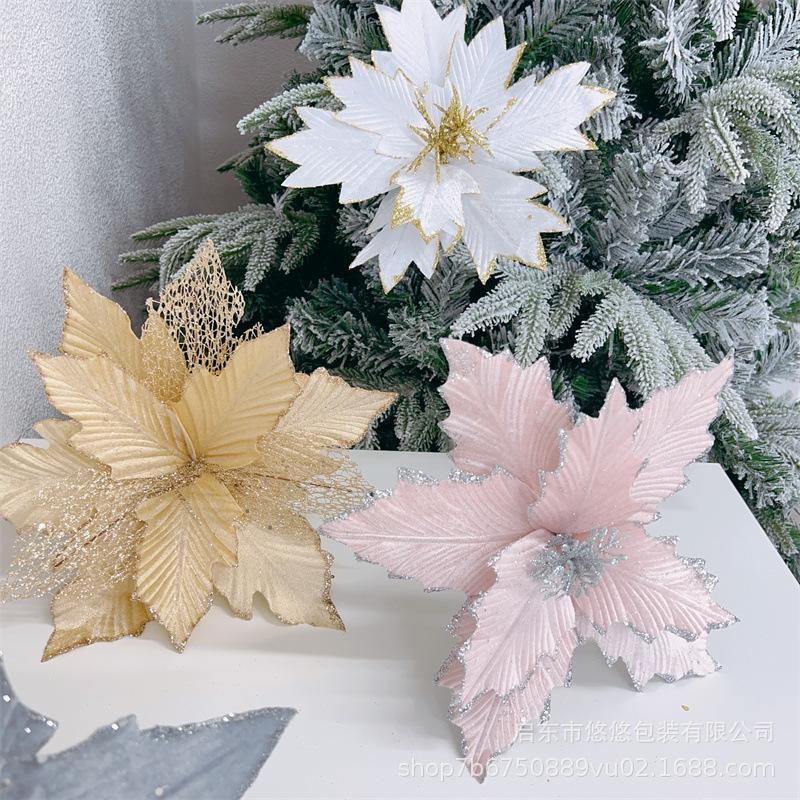 Flores de Terciopelo Simulado Fino con Brillantina Transfronterizas de Navidad Decoración para Árbol de Navidad Guirnalda Arreglo DIY Decoraciones Hechas a Mano