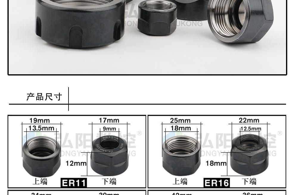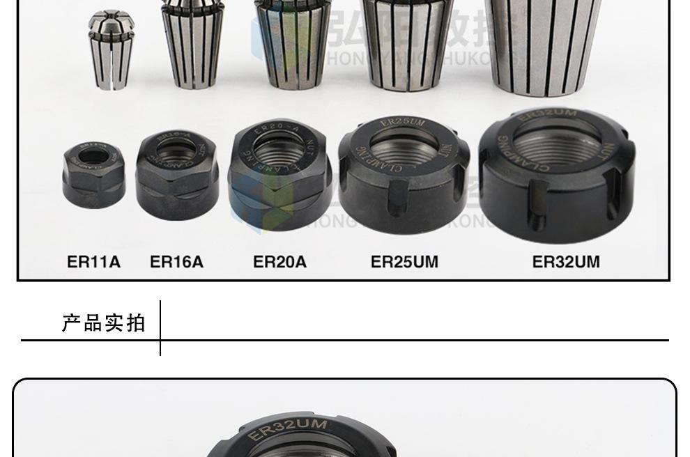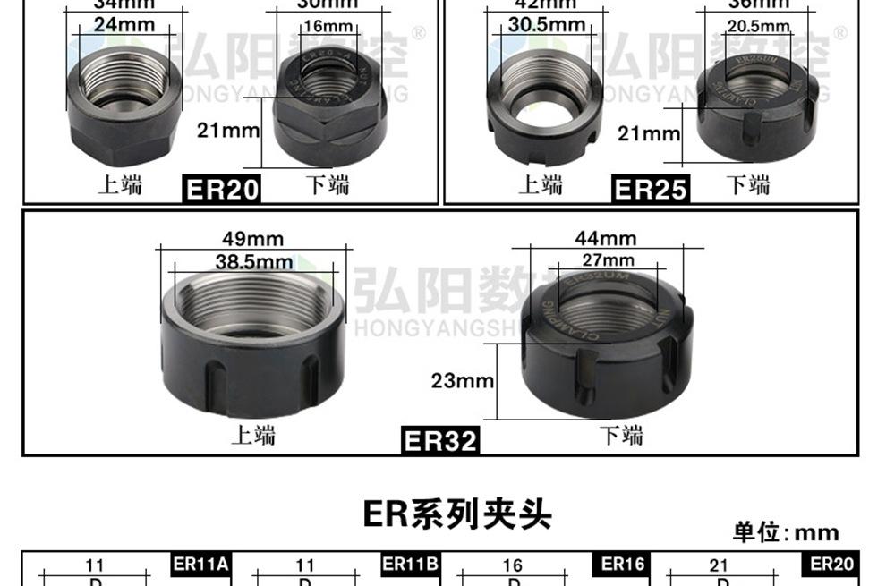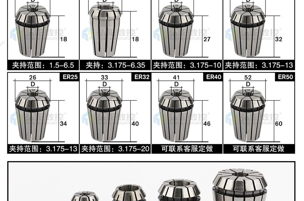 ER11 chuck (1~7mm), ER16 chuck (1~10mm), ER20 chuck (1~13mm), ER25 chuck (1~16mm), ER32 chuck (1~17mm), ER11 M...