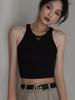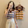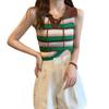 Camisola de rayas con cuello POLO para mujer, diseño de verano, camiseta corta para exteriores, chaleco sin mangas, top con hombros descubiertos estilo Spice Girl