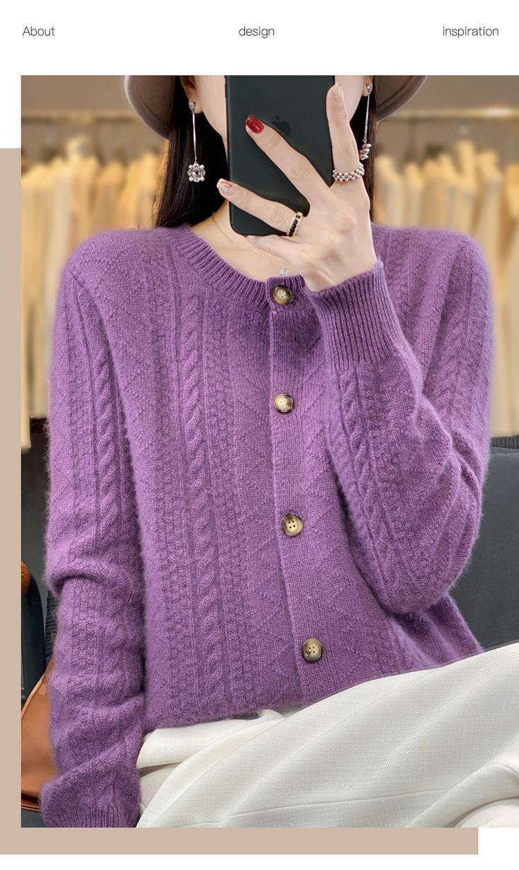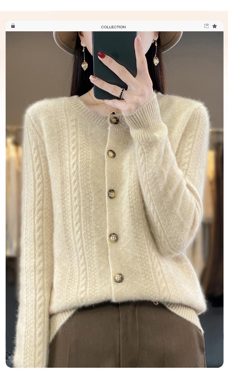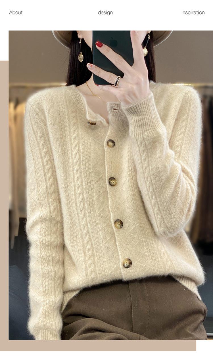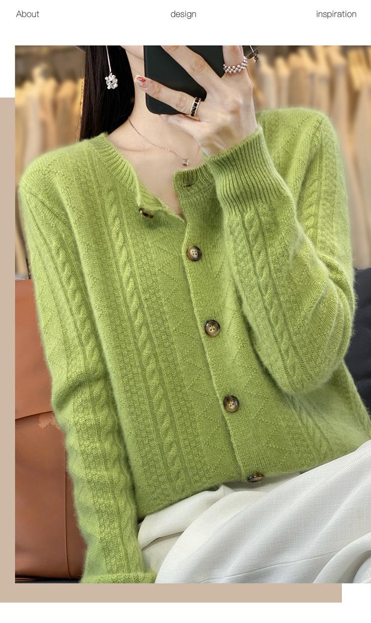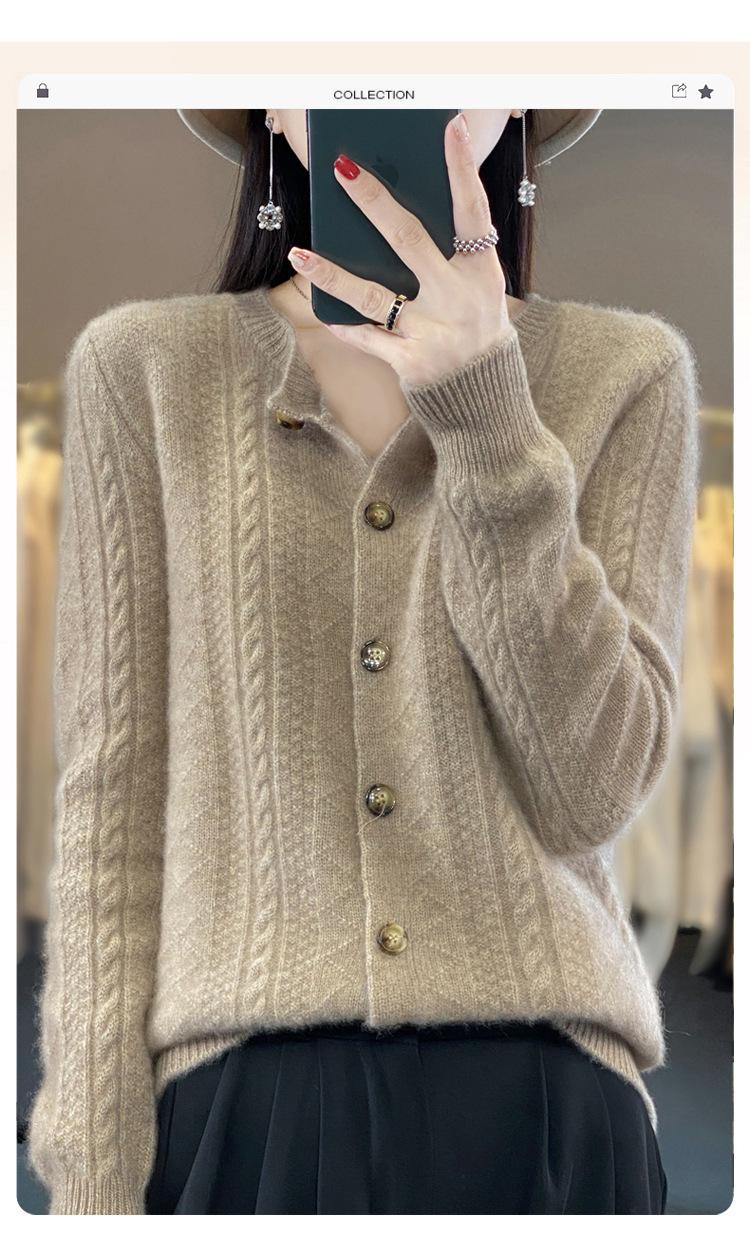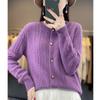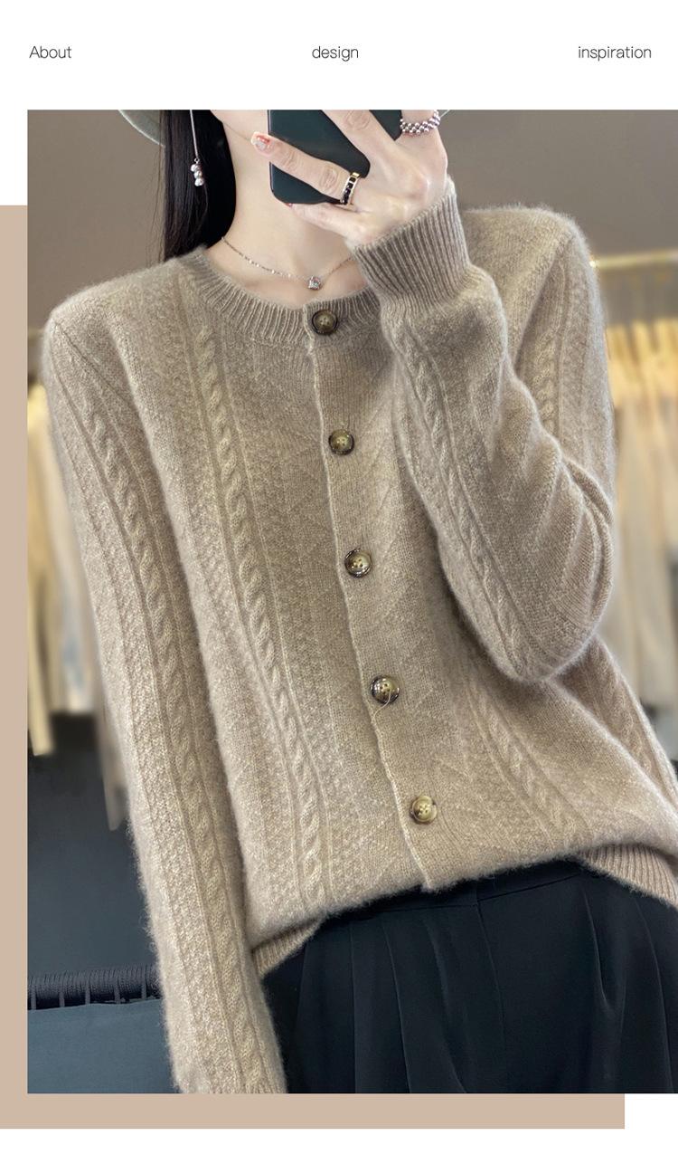 Suéter Cárdigan de Cachemira para Mujer Otoño Invierno Flor Trenzada Cuello Redondo Top Suéter Abrigo Principios de Otoño