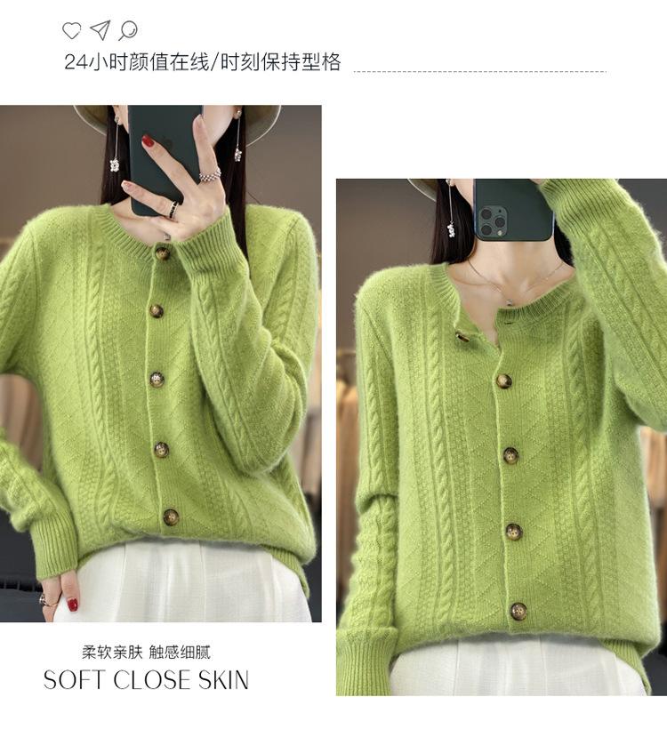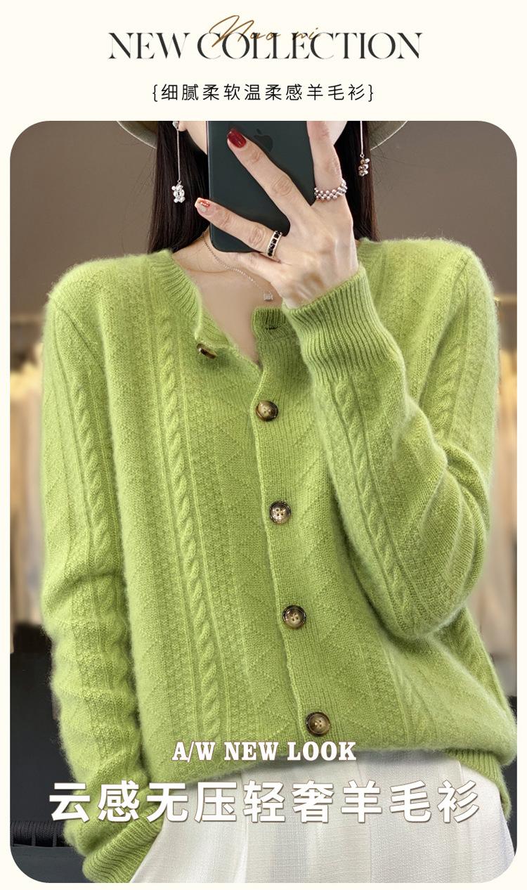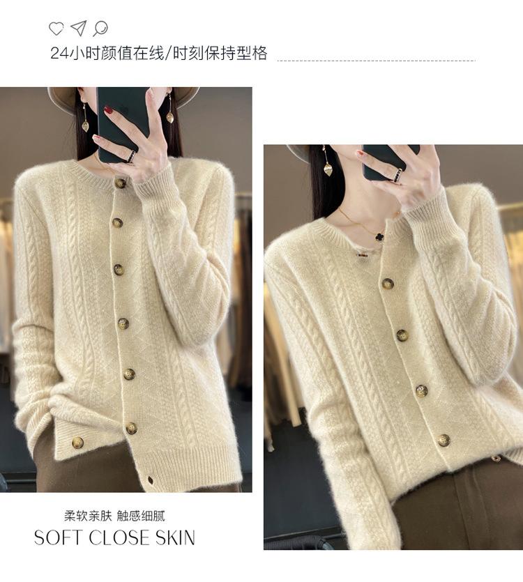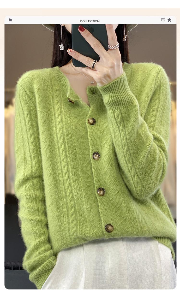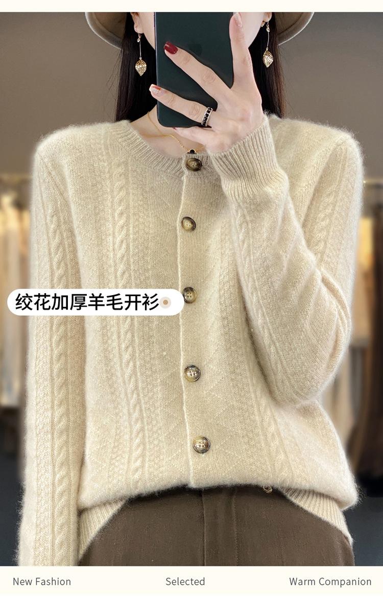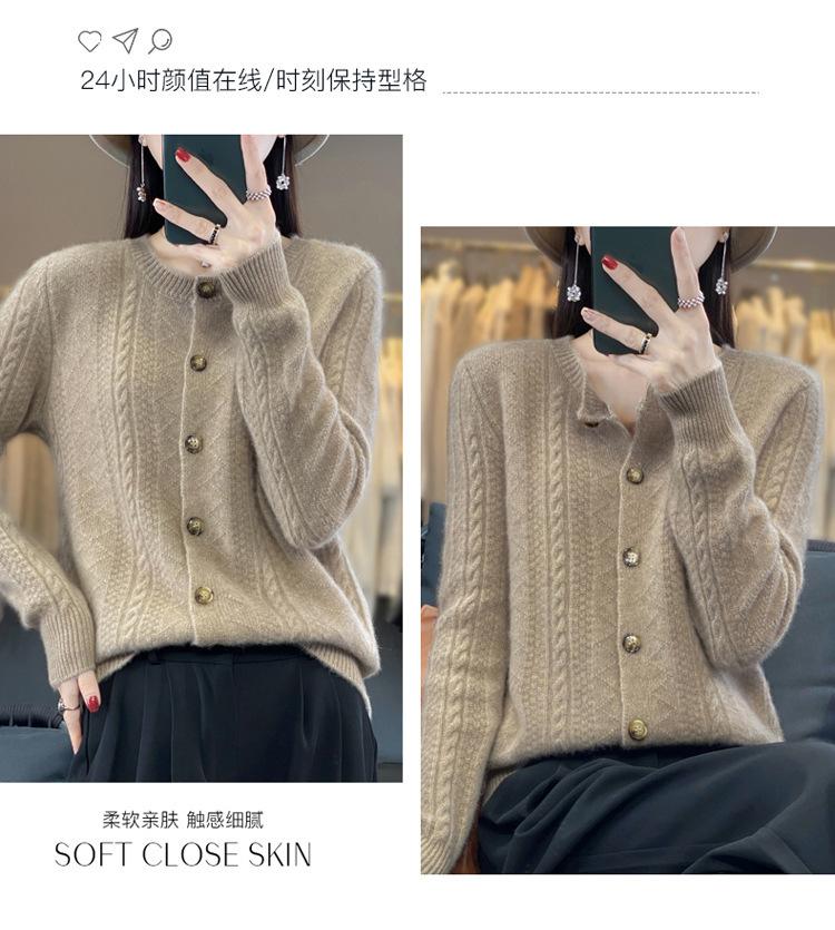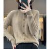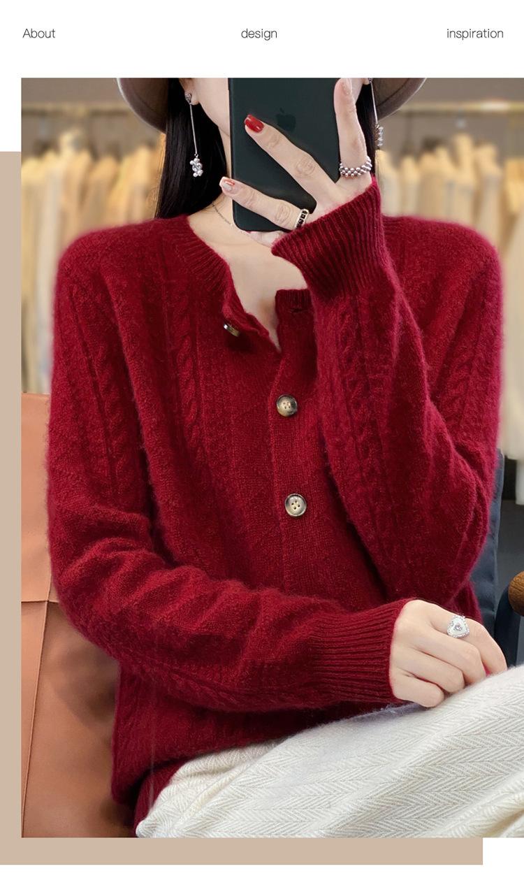Suéter Cárdigan de Cachemira para Mujer Otoño Invierno Flor Trenzada Cuello Redondo Top Suéter Abrigo Principios de Otoño